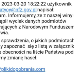 – Informujemy i ostrzegamy. Nie doszło do żadnego wycieku danych z NFZ. Nasza instytucja nie udostępnia listy podmiotów, z którymi współpracuje. Nie prowadzimy też obecnie żadnej aktualizacji serwerów systemu zarządzania obiegiem informacji. W sytuacjach, kiedy taka aktualizacja jest prowadzona na pewno nie informujemy o tym drogą mailową – podkreśla rzecznik.