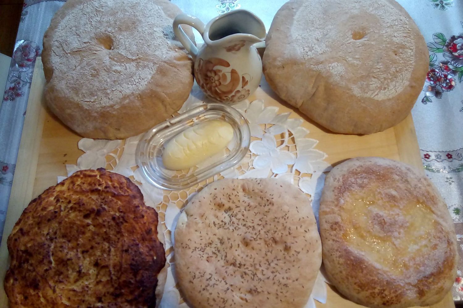 Składniki: Ciasto: 2 kg mąki pszennej, 5 dag drożdży, 1 łyżka soli, około 1 litr serwatki lub wody, 1 łyżka cukru.