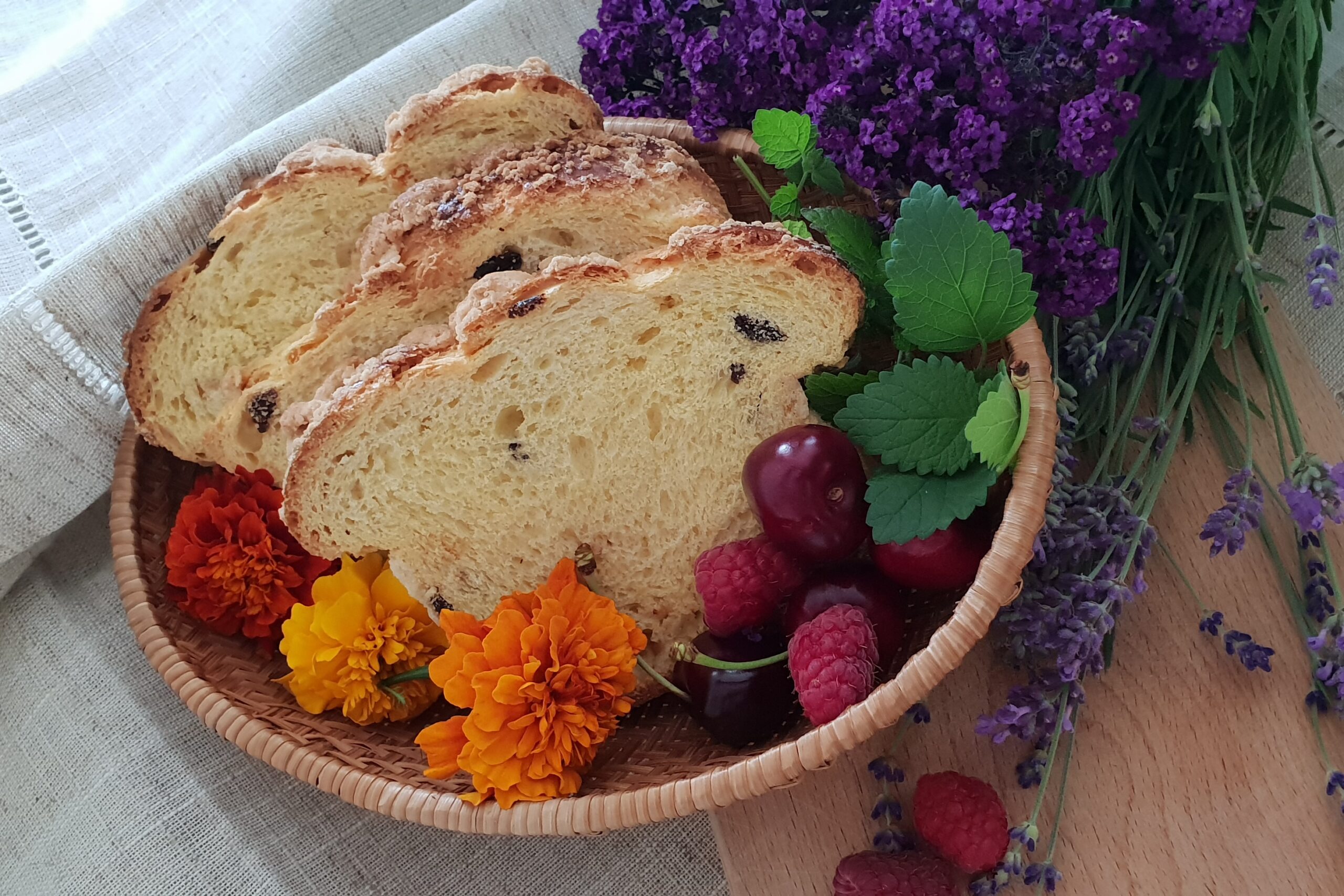 przygotować rozczyn i odstawić do wyrośnięcia. Następnie dodać mąkę, jajka, szczyptę soli, cukier i alkohol. Wszystko razem dobrze wyrobić, aż ciasto zacznie „odchodzić” od ręki i stanie się błyszczące. Odstawić ciasto w ciepłe miejsce do wyrośnięcia. Ciasto musi podwoić swoją objętość.