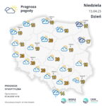W niedzielę (13 kwietnia) tylko na północy zachmurzenie będzie okresami duże i tam może spaść słaby deszcz. Na pozostałym obszarze będzie już słonecznie. Prognozuje się temperaturę maksymalną od około 14°C na północnym wschodzie i wybrzeżu do 20°C na południu i zachodzie. W rejonach podgórskich wiatr skręci na południowy i lokalnie będzie osiągać w porywach około 60 km/h.