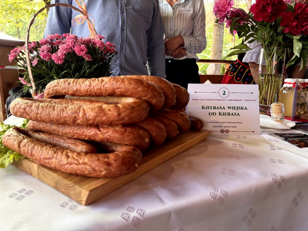 W ofercie masarni z Komorowa państwa Marzeny i Łukasza Kierasów są wyłącznie wędliny i mięsa wytwarzane w sposób naturalny, według receptur dziadków i pradziadków. Jak mówią właściciele, prosto z babcinej kuchni, czyli bez „chemii”. Uznanie klientów mają nie tylko salcesony, pasztety, kaszanka, szynki, balerony pieczone i wędzone, ale i wyborne swojskie kiełbasy, a wśród tego asortymentu nagrodzona w finale konkursu Smaki Regionów 2025 – Kiełbasa wiejska od Kierasa.