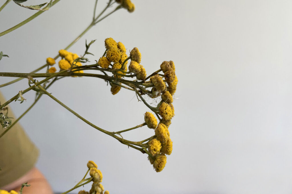 Potrzebne będą zarówno zielone części rośliny, jak i żółte baldachy kwiatów. Ziele wrotyczu zbieramy w okresie kwitnienia, to znaczy od początku lipca do połowy września. Można też przygotować susz.
