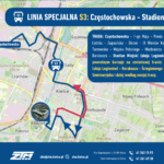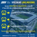 Przyjazd pod stadion od strony Alei Legionów planowany jest około 45 minut przed pierwszym gwizdkiem arbitra. Powrót (odjazd z Alei Legionów) 20 minut po zakończeniu spotkania.