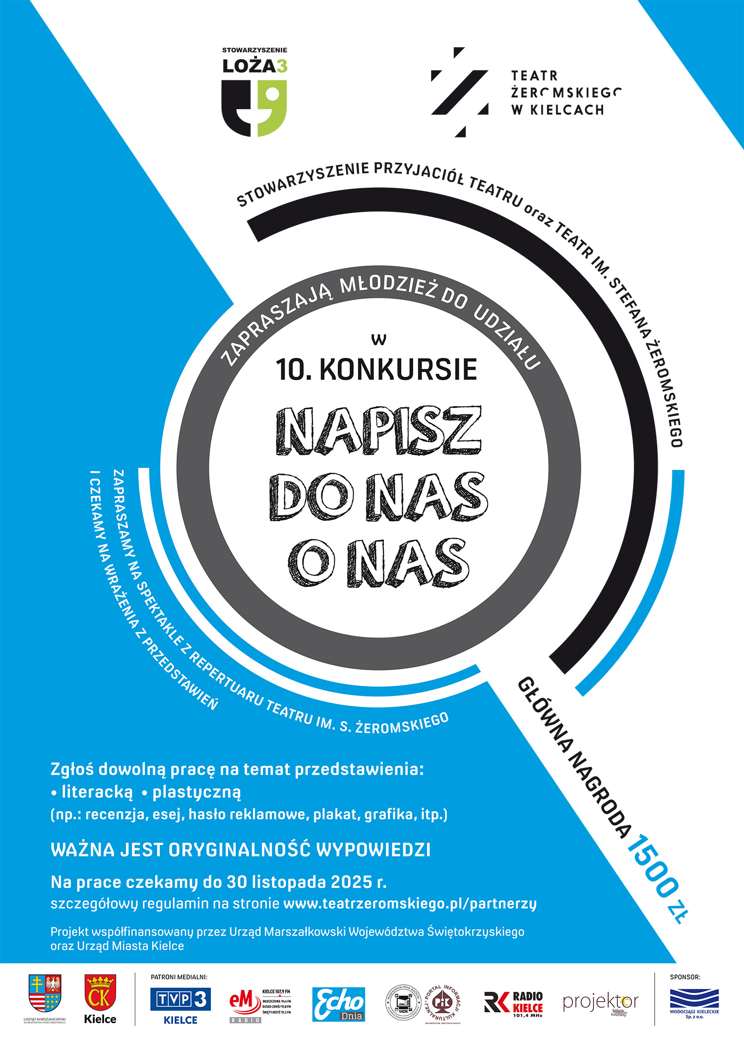 Organizatorem 10. Konkursu „Napisz do nas o nas” jest Stowarzyszenie Przyjaciół Teatru wraz z Teatrem im. Stefana Żeromskiego. Współorganizatorami są Urząd Marszałkowski Województwa Świętokrzyskiego oraz Urząd Miasta Kielce.