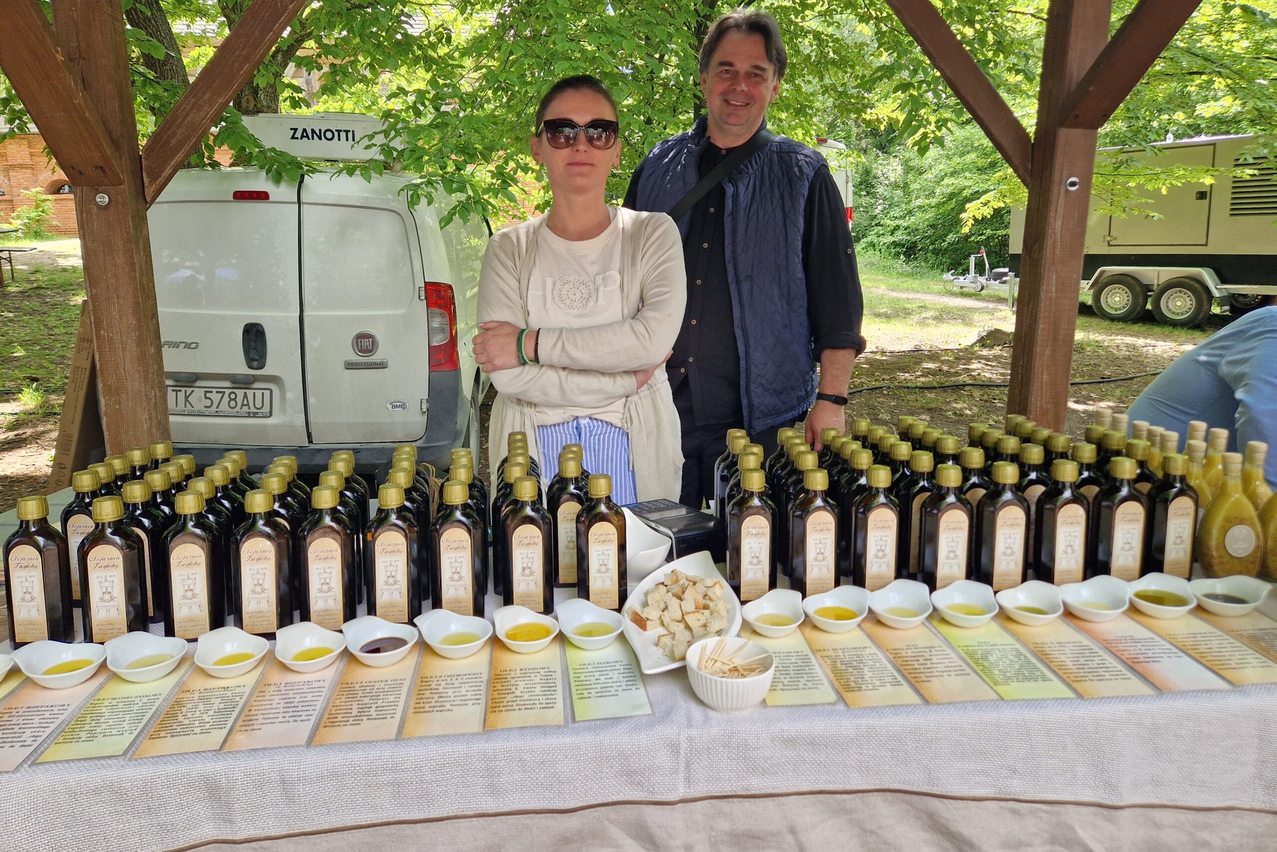 – Olej rydzowy produkowany jest metodą tradycyjną, taką jak robili to nasi przodkowie. Jest nieoczyszczony, niefiltrowany, a więc ma dużo więcej wartości niż olej kupowany w sklepie. Ten pozyskiwany z nasion lnianki siewnej ma na Ponidziu najdłuższą tradycję. W przeszłości nie był dostępny na co dzień, lecz podawany na przykład na święta. Wbrew pozorom nie jest wytwarzany z grzybów rydzów, ale z nasion lnianki siewnej, które mają rudy kolor – mówi Mariusz Roszkowski z Olejarni Zagłoby w Mikołowicach.