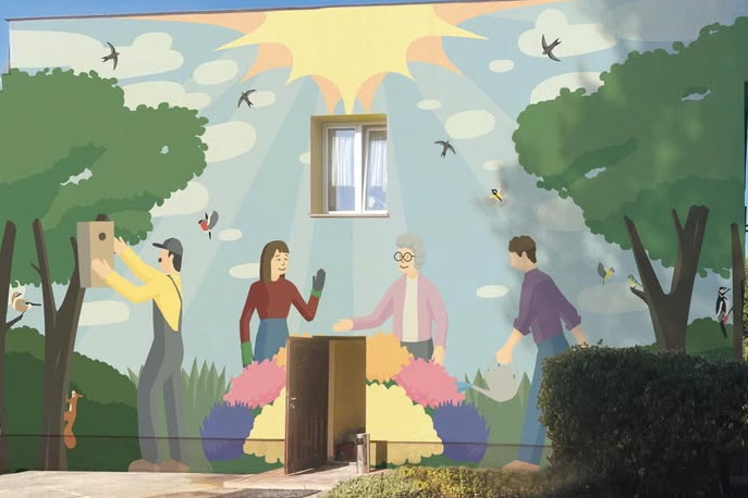 – Mural wpisuje się w otoczenie osiedla Milica, jest kolorowy, przedstawia najważniejsze zadania naszego Centrum, czyli opiekę nad zielenią, kwiatami, ale też przygotowywanie posiłków, bo mieści się na ścianie budynku Jadło-Manii, w której przygotowujemy obiady – opowiada.