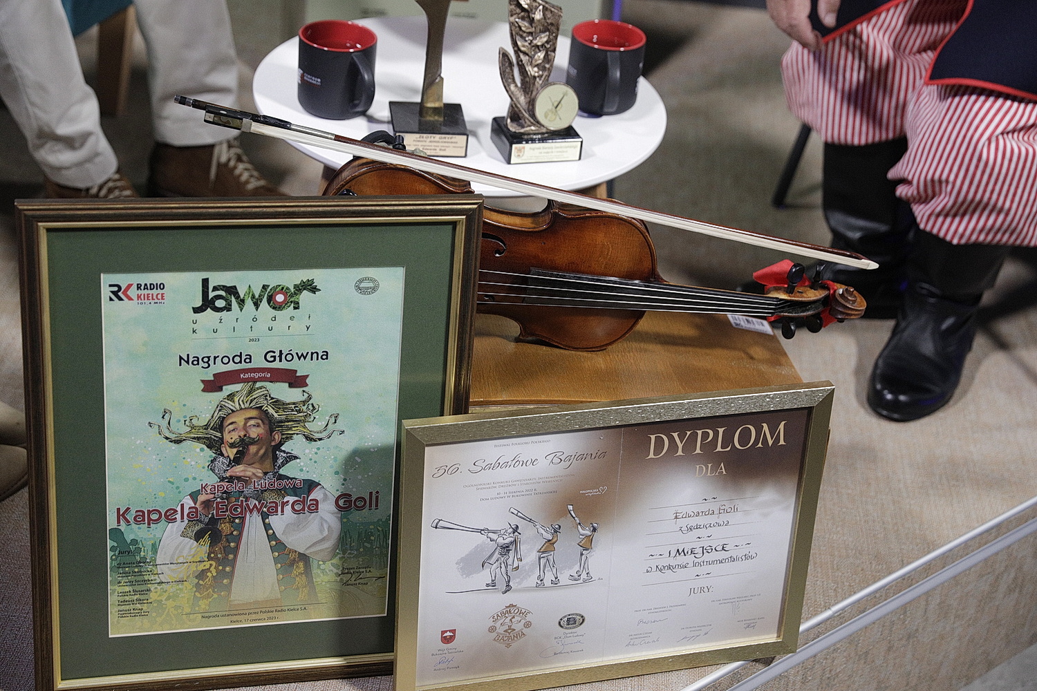 Edward Gola wspomina też swoje niezwykłe spotkanie z muzykiem, który grał w największych salach koncertowych Europy, skrzypkiem symfonicznym. – Przekazał mi tajemnicę głośnego grania na instrumencie – dodaje. Z kolei od Jana Jawora z Piołunki, wybitnego skrzypka, dostał skrzypce z 1716 roku z lwią główką na gryfie.