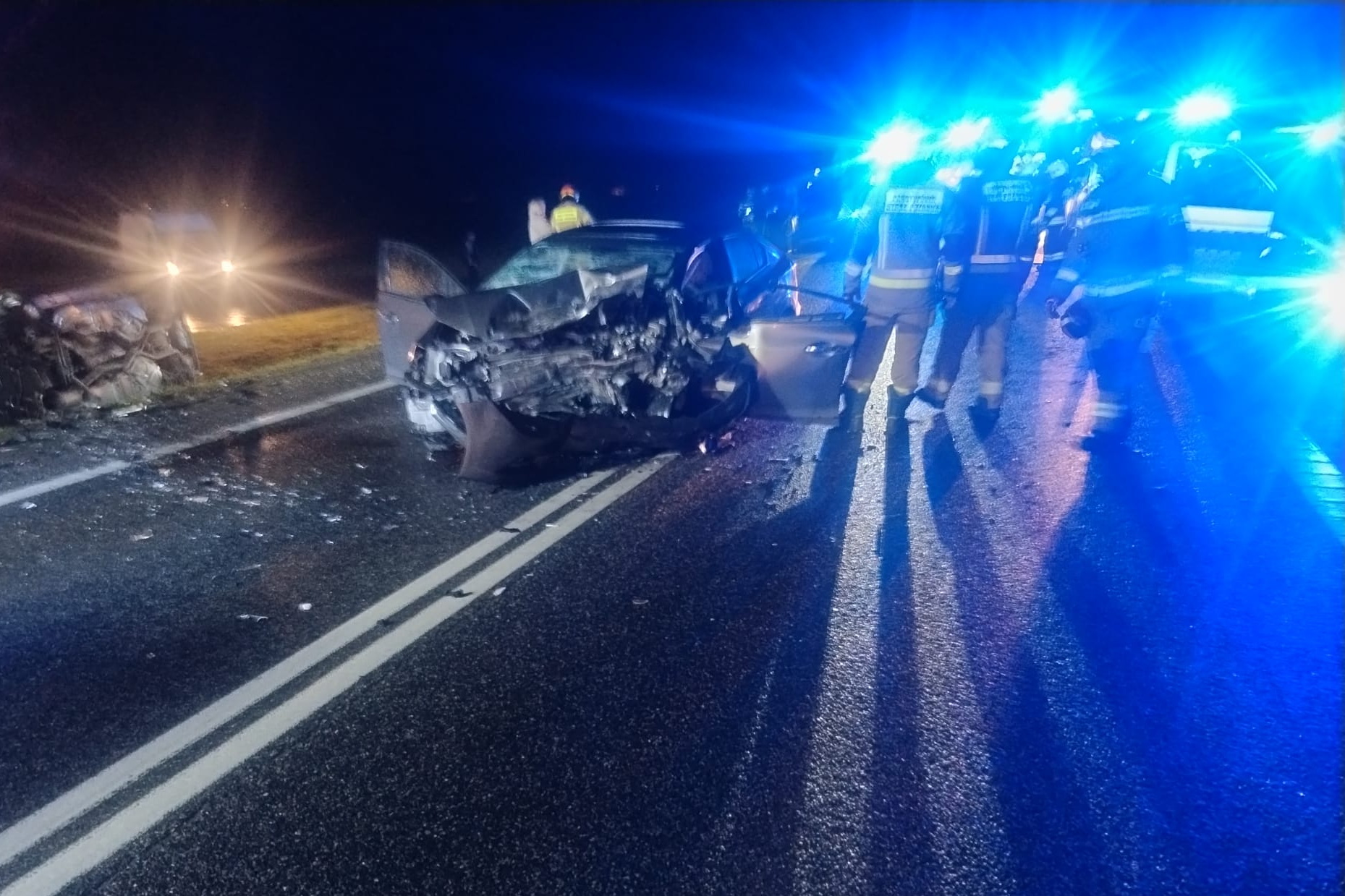– Na odcinku od strony Tarnobrzega w kierunku Łoniowa, w ciągu DK9 doszło do czołowego zderzenia pojazdu honda kierowanego przez 68-letniego mężczyznę z pojazdem mercedes, który prowadził 61-latek. Pierwsze ustalenia policjantów wskazują, że z niewyjaśnionych przyczyn kierujący hondą zjechał na przeciwległy pas ruchu, gdzie zderzył się czołowo z prawidłowo jadącym mercedesem. Droga jest całkowicie zablokowana – opisuje funkcjonariusz.