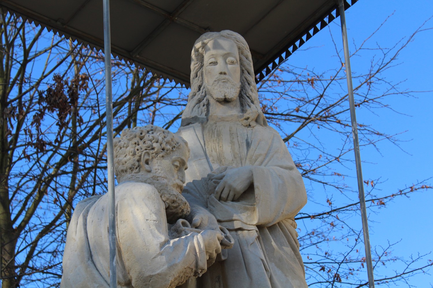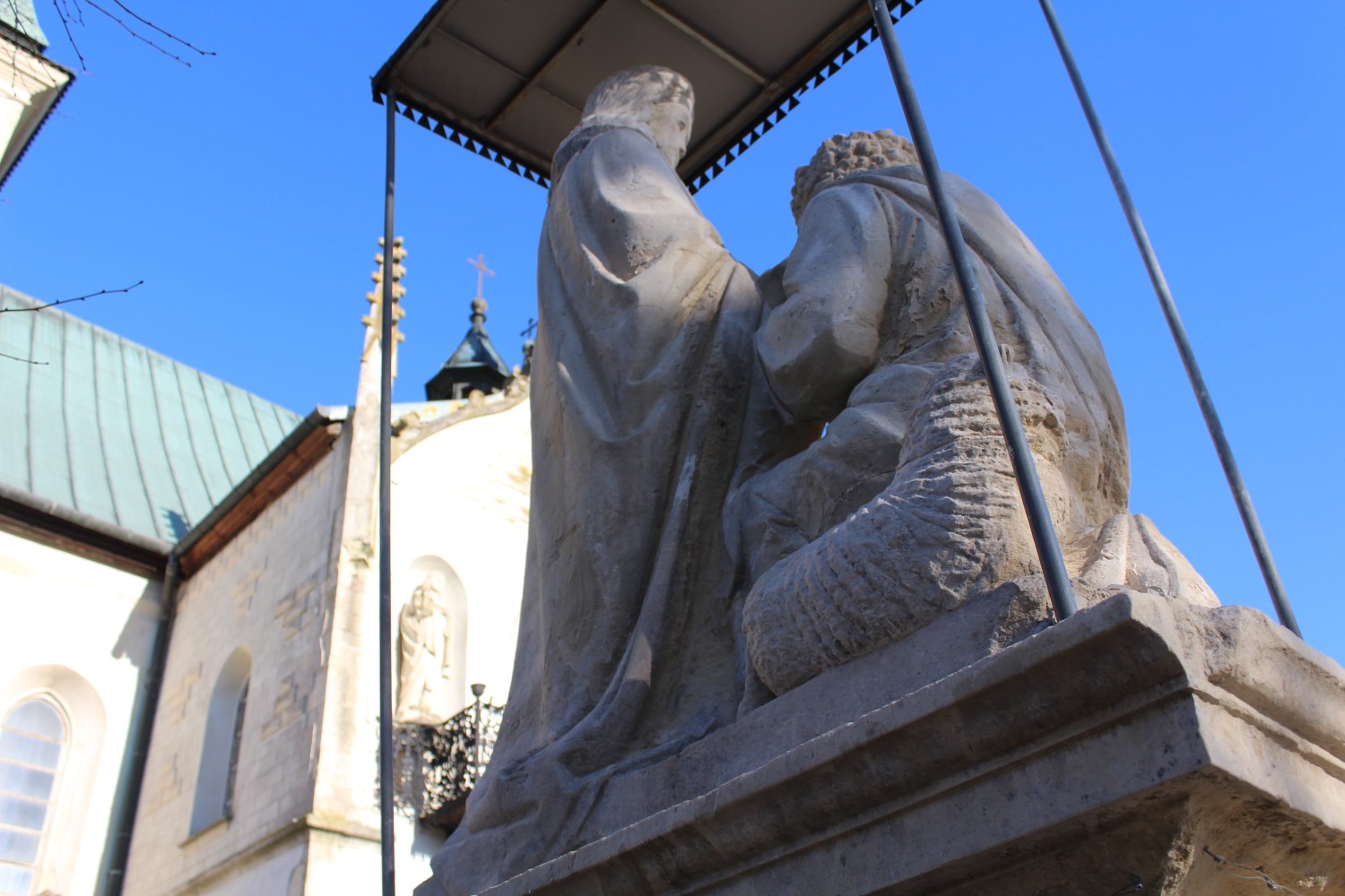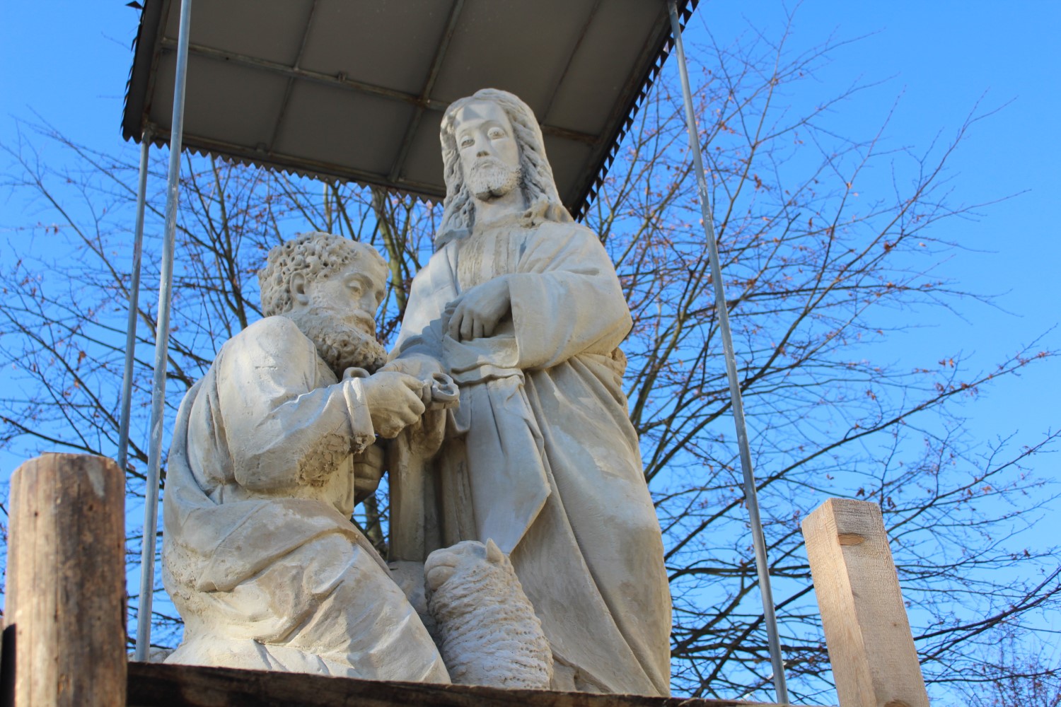 To kolejny etap odnowy rzeźb przy świątyni. Cztery lata temu odrestaurowano figurę świętego Pawła, drugiego patrona parafii. Na jej cokole widnieją słowa z Listu do Efezjan: „Postępujcie jak synowie światłości”, oraz przypomnienie o pierwszej pielgrzymce Jana Pawła II do Polski w 1979 roku.