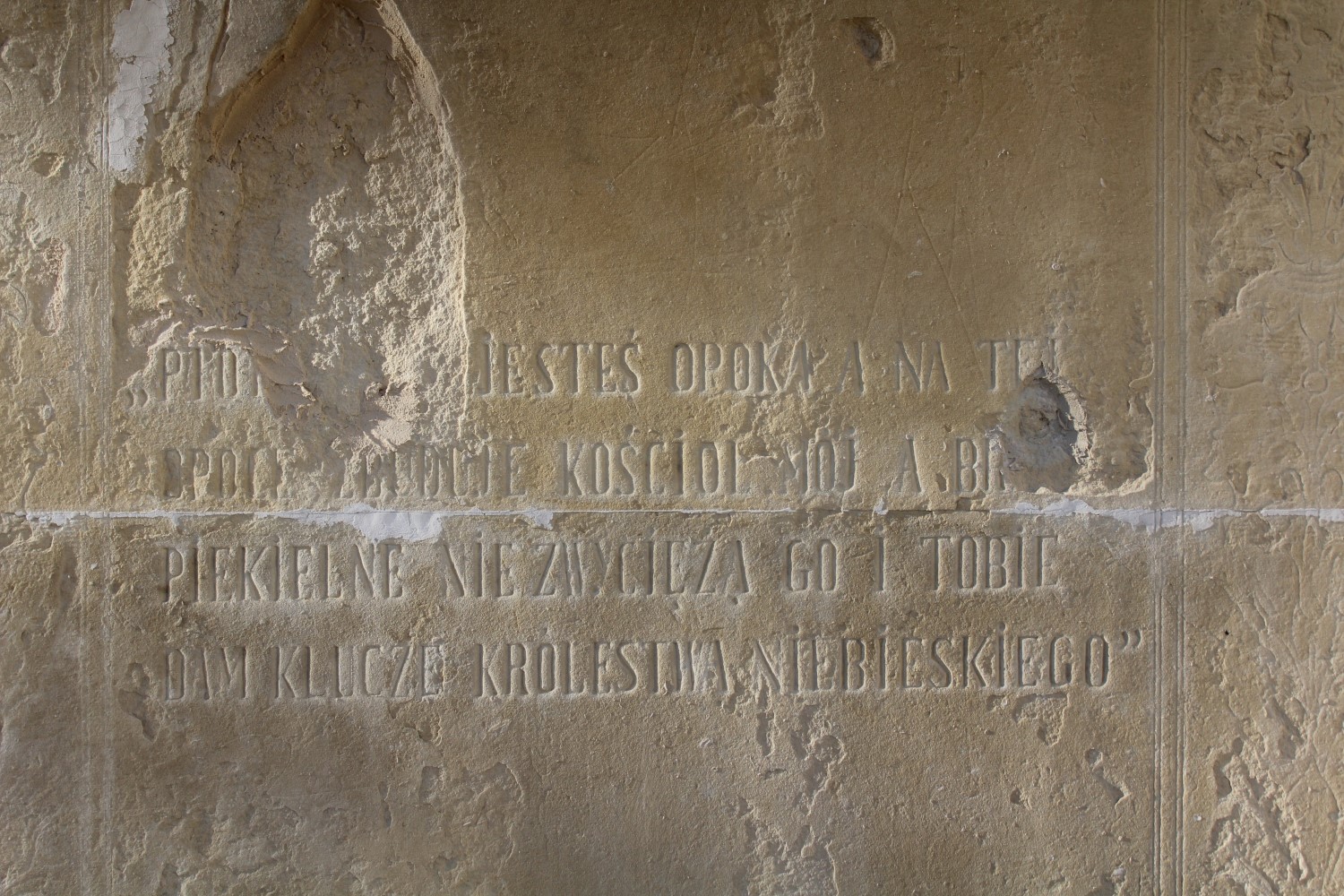 Renowacji wymagają również znajdujące się na cokole napisy, między innymi słowa „Ty jesteś opoką i na tej opoce zbuduję mój Kościół”, przypominające o szczególnej roli św. Piotra jako pierwszego papieża. Jak dodaje proboszcz, choć parafia otrzymała na prace dotację, to potrzeby są znacznie większe.