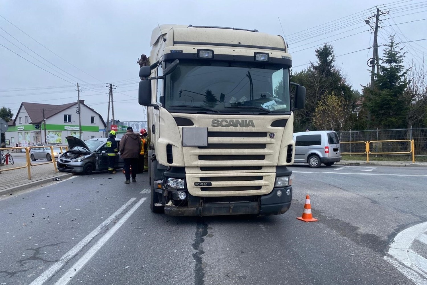 Zderzenie auta osobowego z pojazdem ciężarowym na trasie krajowej nr 9.