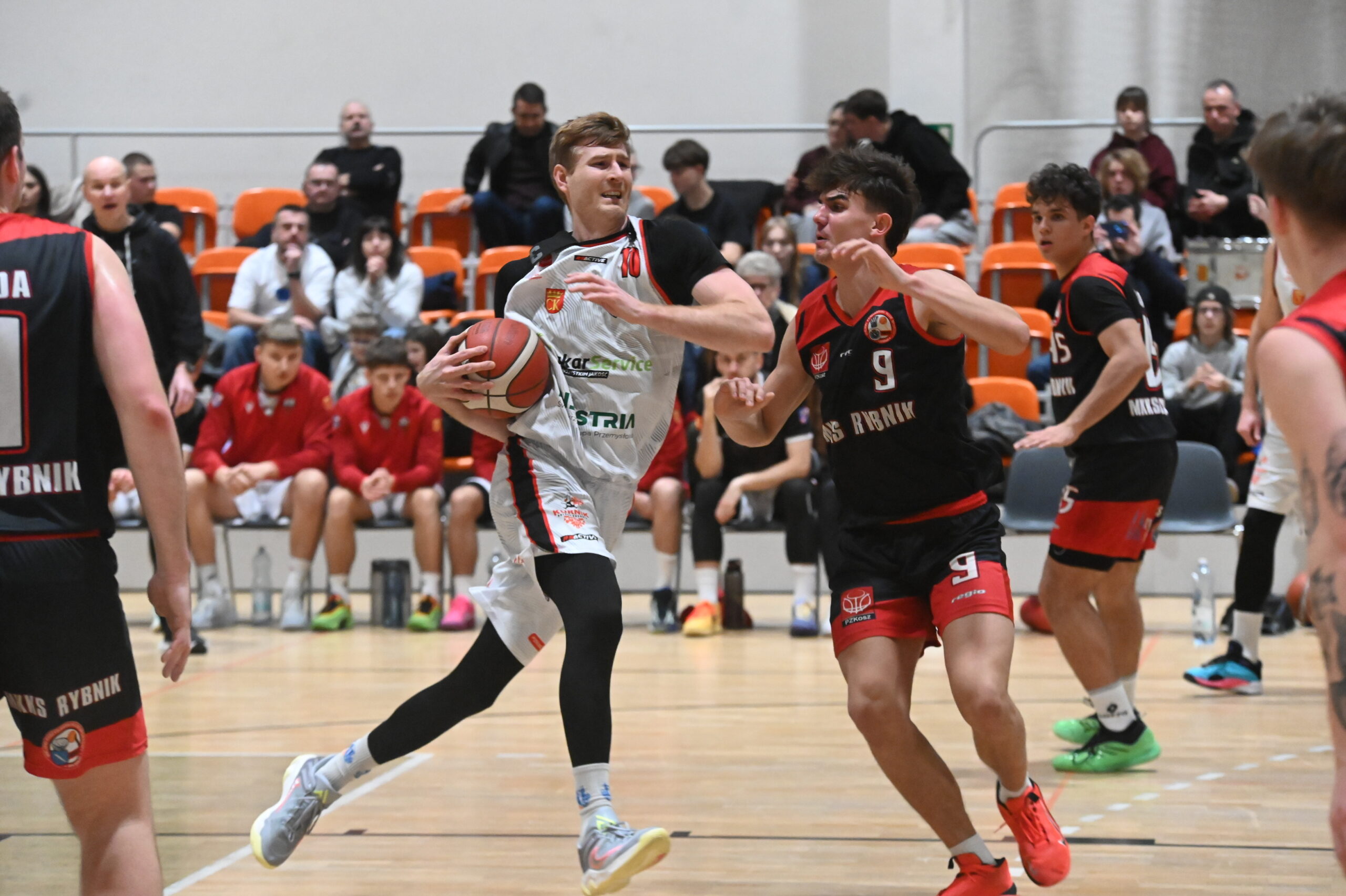 – Ostatecznie wygraliśmy wysoko 90:67, drugą połowę 54:27, ale to był bardzo trudny mecz i przez ponad 21 minut Rybnik był na prowadzeniu, więc od początku było ciężko. W pierwszej połowie przede wszystkim skuteczności brakło, bo graliśmy dobre akcje, mieliśmy otwarte rzuty z dystansu i też w tym meczu chcieliśmy grać dużo więcej piłek pod kosz i graliśmy je. Mieliśmy dobre sytuacje, ale nie mogliśmy poradzić sobie w grze jeden na jeden z obrońcami z Rybnika, a po drugiej stronie mieliśmy problem z deską. Goście mieli duży zbiórek w ataku, ponowień i z tego dodatkowych punktów i w zasadzie tylko te dwie rzeczy chcieliśmy poprawić na drugą połowę. Rzeczywiście skuteczność była lepsza, szybki atak zafunkcjonował, a jak dobrze idzie w ataku, to też ta obrona była jeszcze lepsza, bo mieliśmy więcej energii – podsumował.
