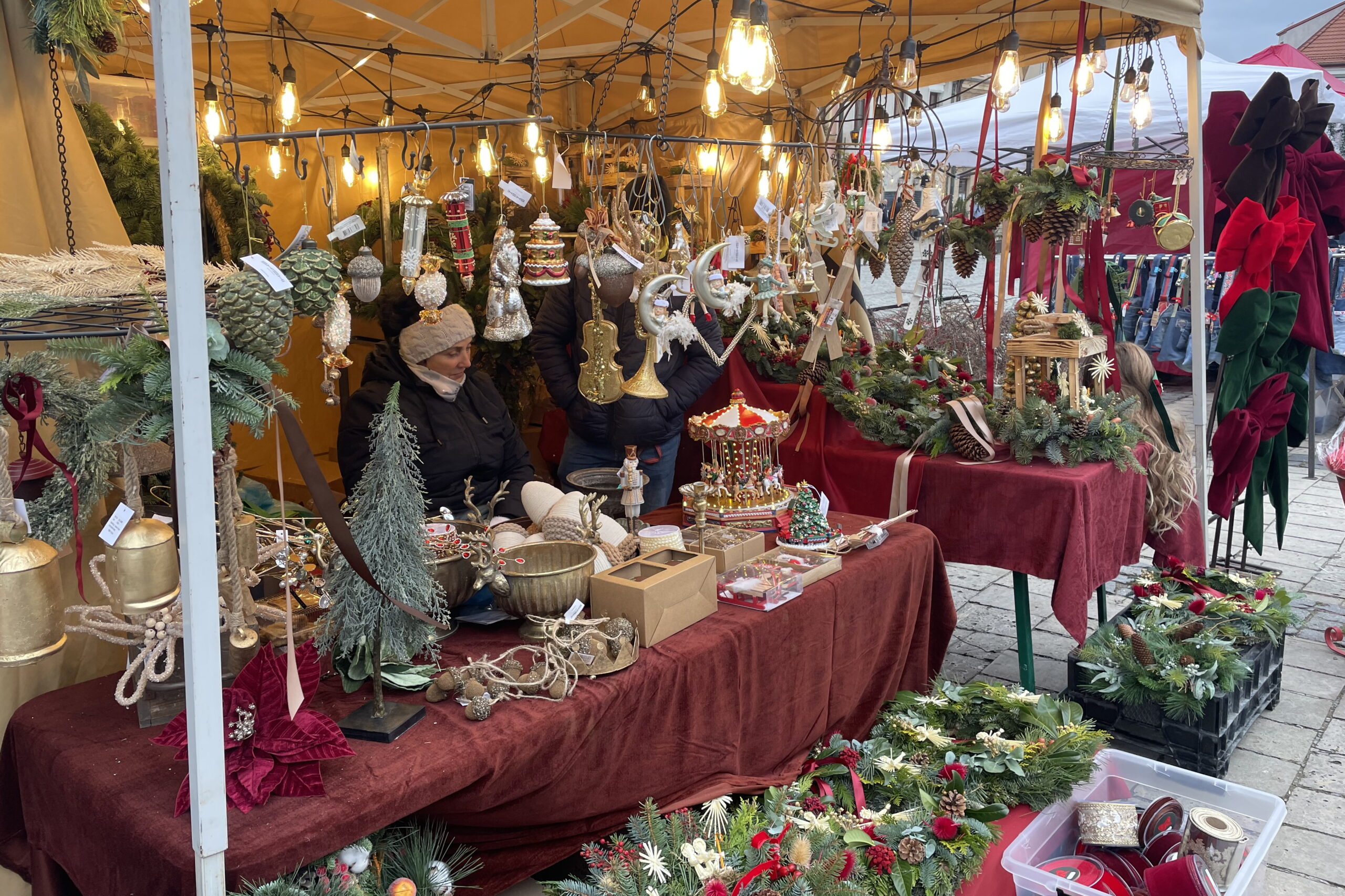 Na stoiskach można kupić stroiki oraz rękodzieło np. przedmioty ceramiczne, ręcznie dziergane bombki, wyroby regionalne, w tym tradycyjne wędliny.