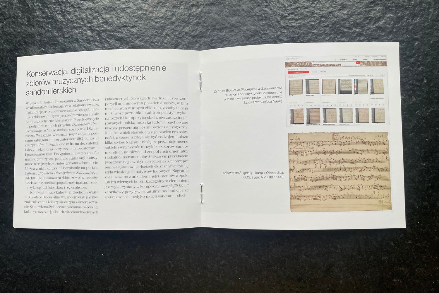Kolekcja rękopisów nutowych, na podstawie których powstała płyta, jest wyjątkowa i składa się z ponad 500 utworów, przechowywanych przez Bibliotekę Diecezjalną w Sandomierzu. Dyrektor placówki, ks. Piotr Tylec poinformował, że zbiór utworów jest świadectwem osiemnastowiecznej kultury muzycznej polskich ośrodków kościelnych i klasztornych.