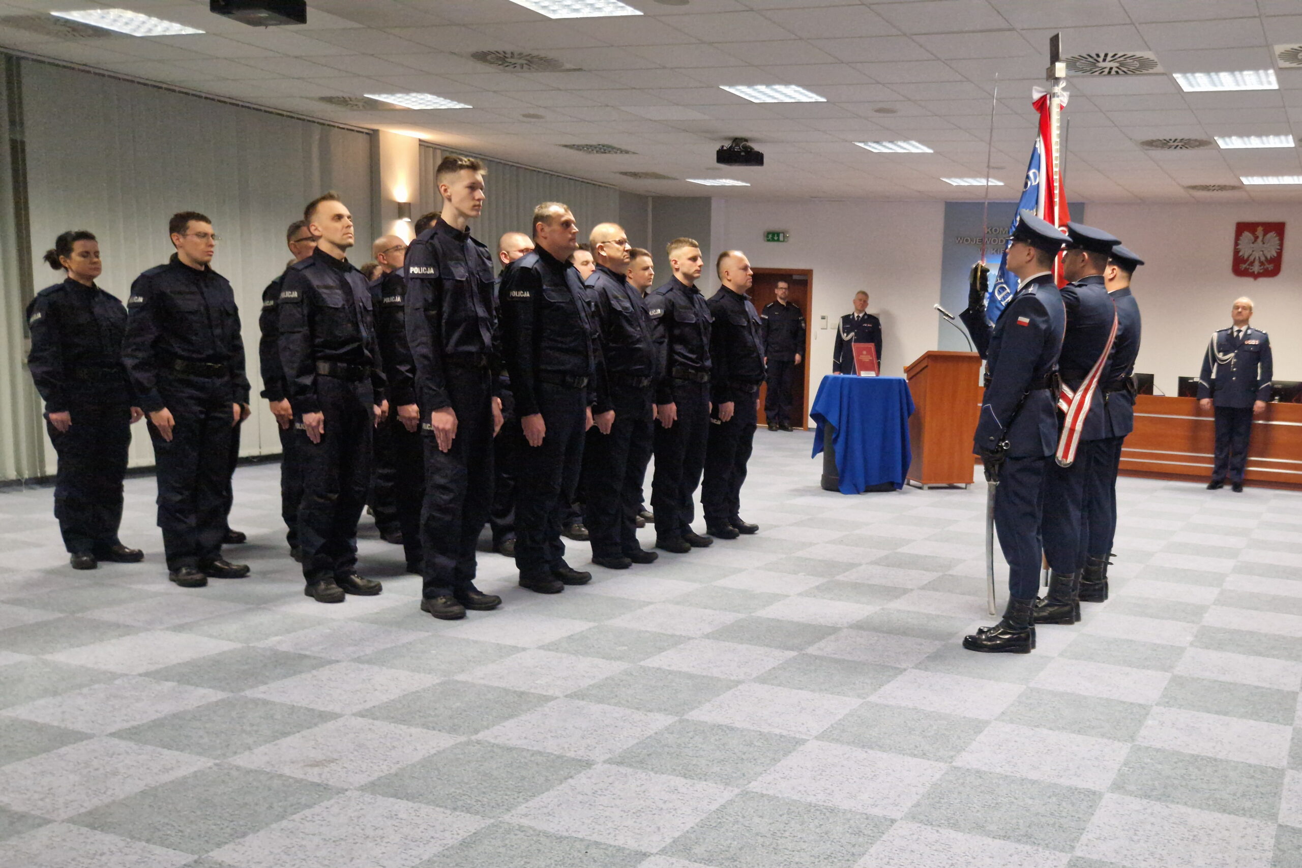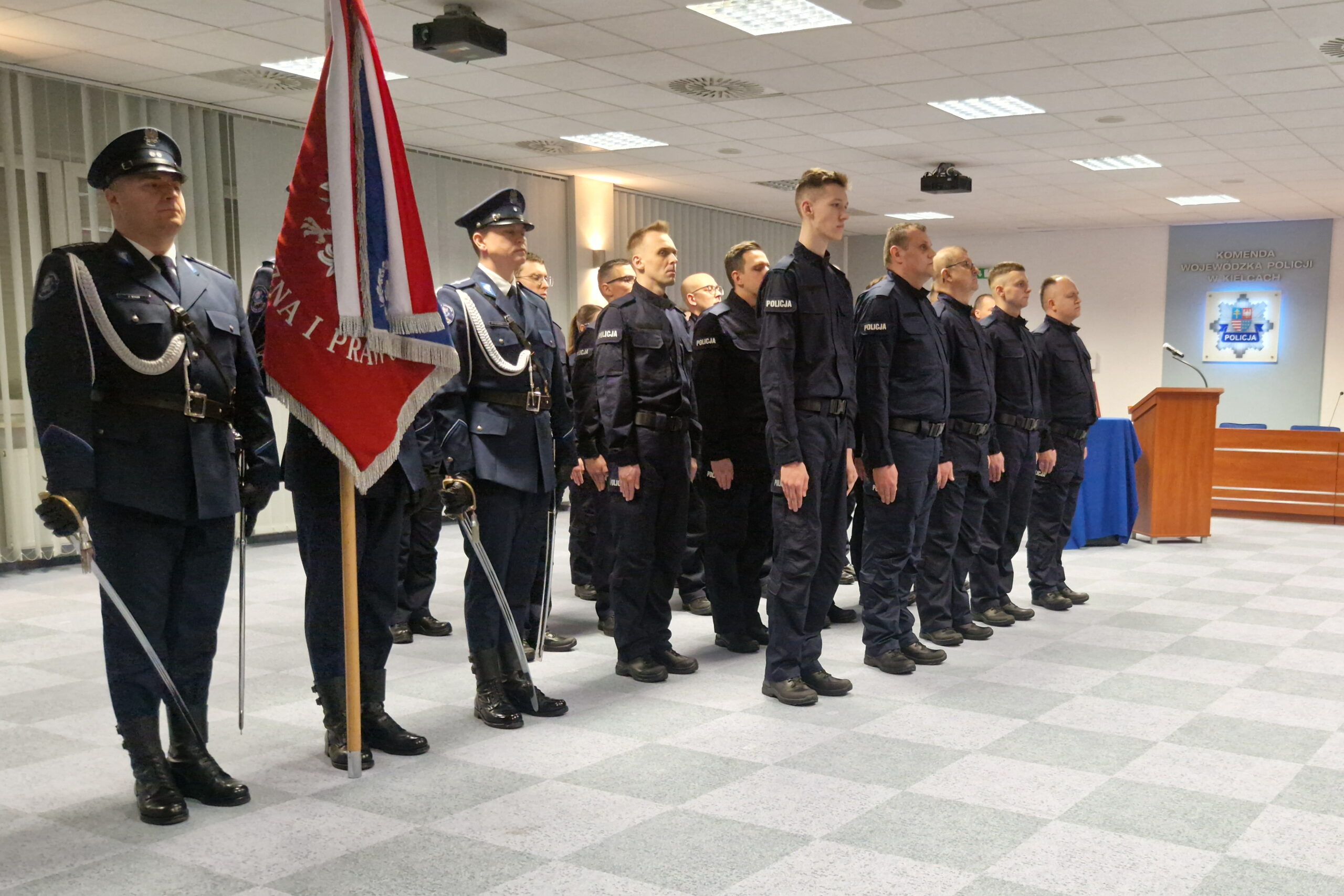 20 nowych funkcjonariuszy dołączyło do szeregów świętokrzyskiej policji. W środę (14 stycznia) odbyło się ich ślubowanie. Świeżo upieczonym funkcjonariuszom towarzyszyły ich rodziny.