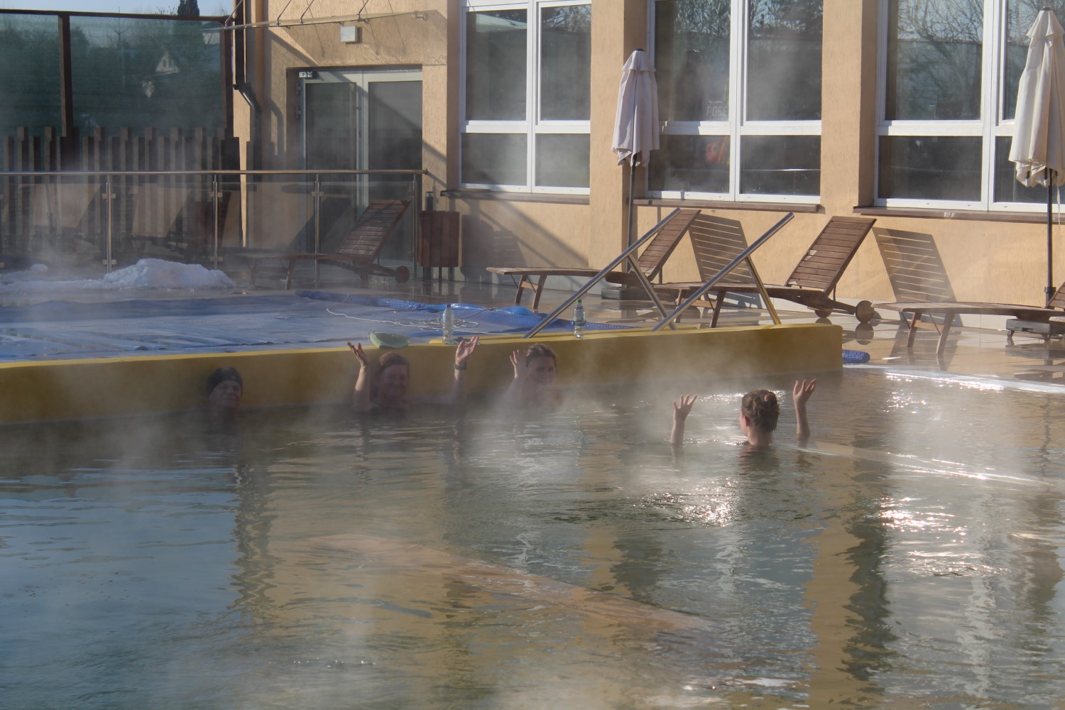 – Jest pięknie: słońce, lekki mróz i ciepła woda. Najczęściej korzystamy z sauny, a później z basenu siarczkowego. Są też bicze wodne i jacuzzi, więc można w pełni korzystać z dobrodziejstw natury.