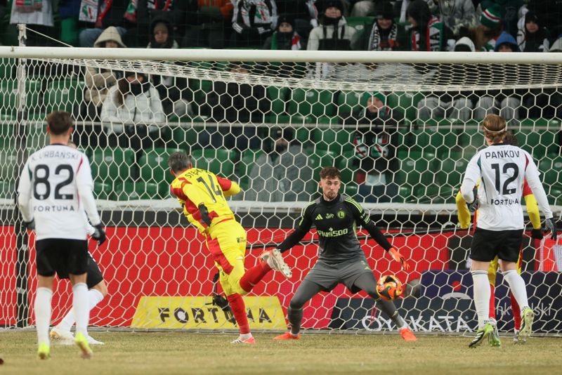 Pod koniec pierwszej połowy sędzia podyktował rzut karny dla Legii, jednak Xavier Dziekoński obronił strzał oraz dobitkę Rajovica.