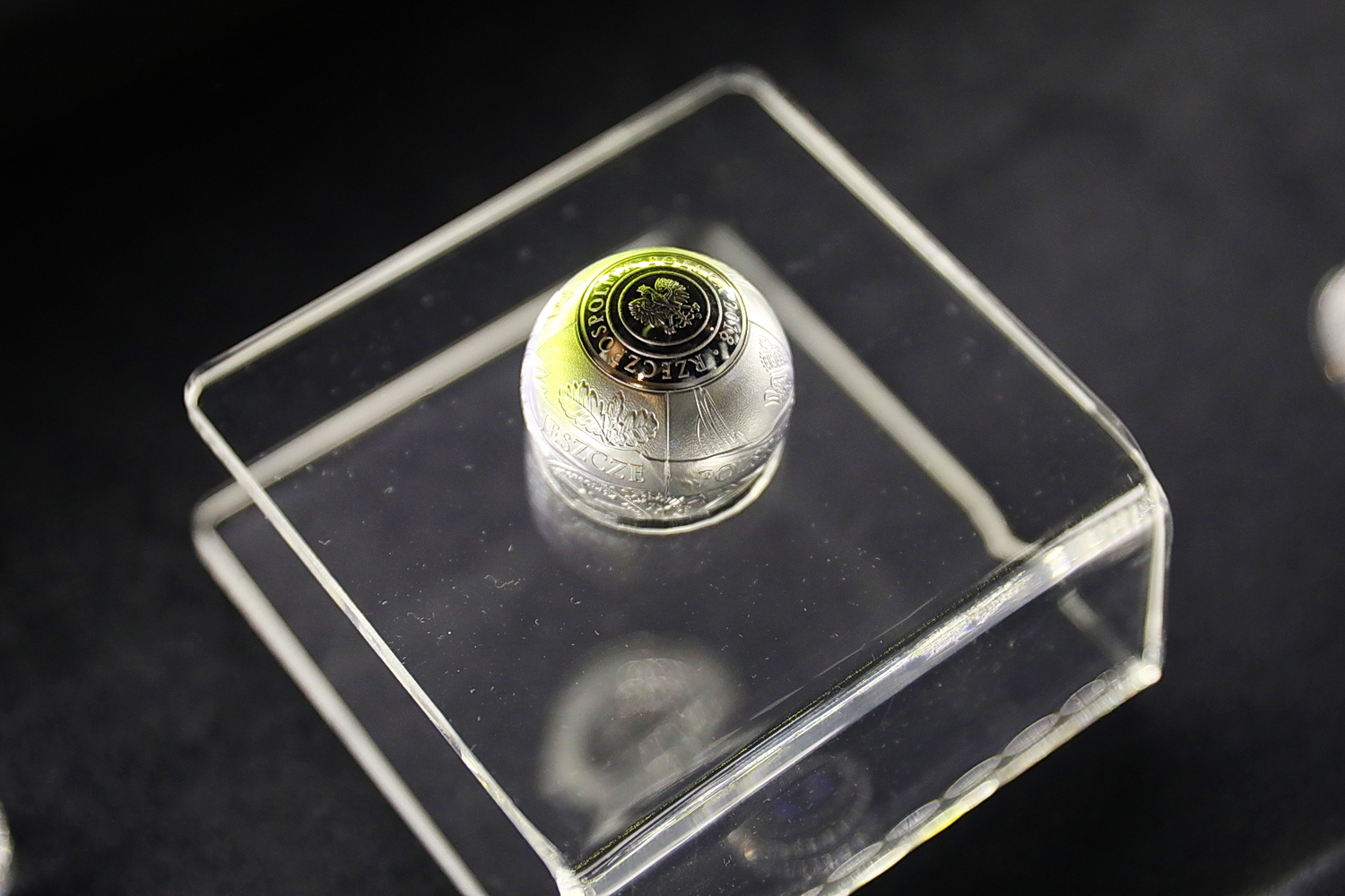 – Upamiętniająca setną rocznicę odzyskania przez Polskę niepodległości, wyemitowana w liczbie 1918 sztuk. Została umieszczona na specjalnym ekspozytorze, dzięki czemu możemy obejrzeć tę kulę z każdej strony – zauważa.