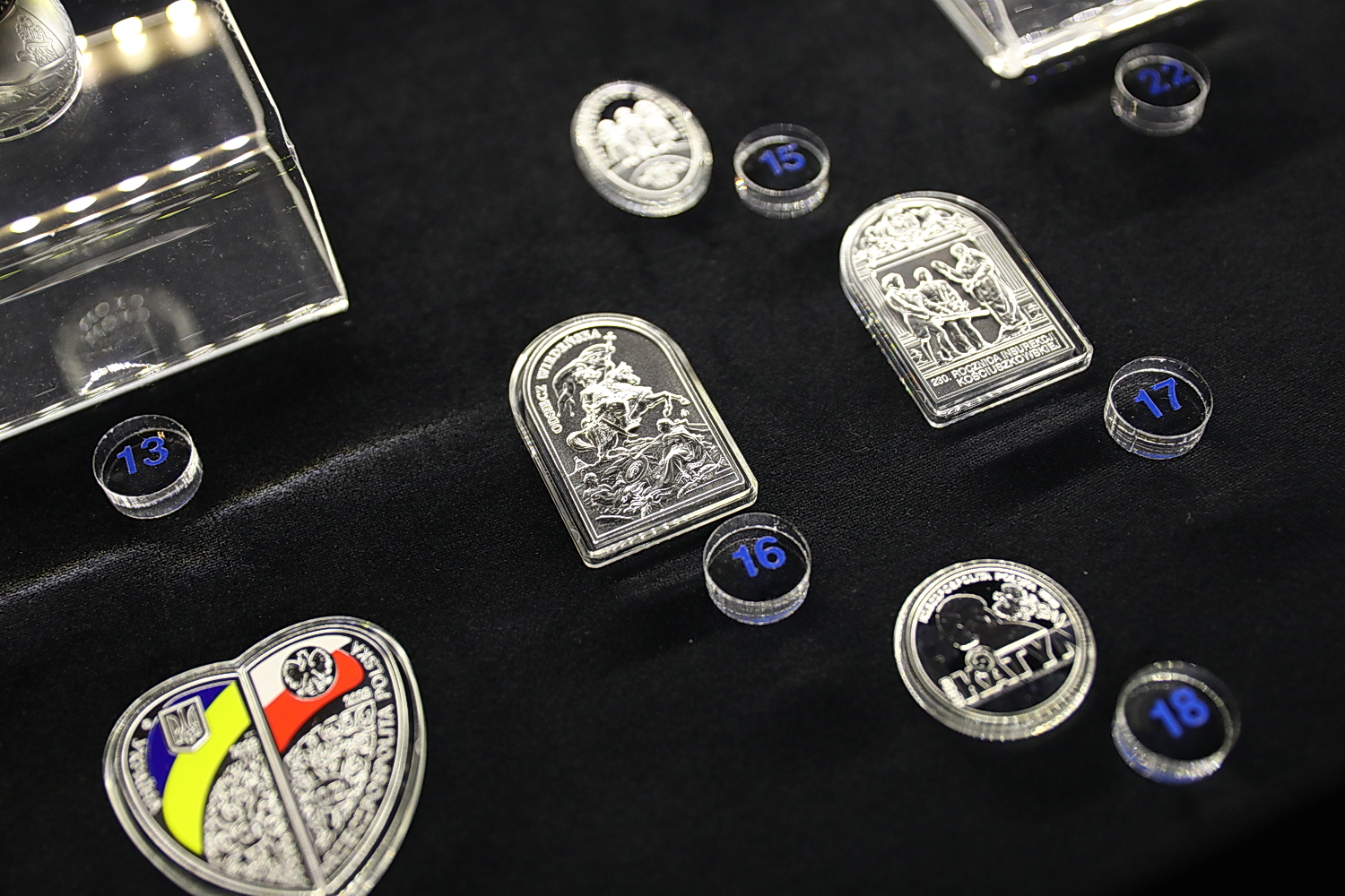 – Wykorzystano w nich elementy z bursztynu, krzemienia pasiastego czy szkła oraz nowoczesne techniki zdobnicze, m.in. selektywne złocenie, druku UV i laserowe matowienie – opisuje.