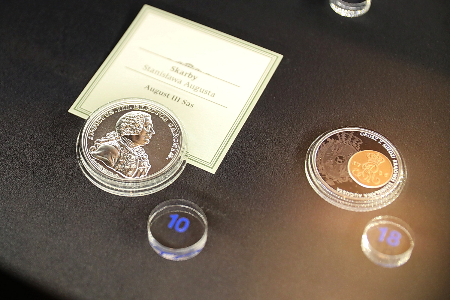 – Są to monety okolicznościowe i banknoty kolekcjonerskie, które co roku Narodowy Bank Polski przekazuje naszej instytucji w darze. Wśród kilkudziesięciu nowych eksponatów, które pokazujemy na wystawie, są zarówno monety z popularnych serii tematycznych, takich jak „Skarby Stanisława Augusta”, wzorowane na XVIII-wiecznej serii medalierskiej z wizerunkami królów Polski, „Historia monety polskiej”, ukazująca dzieje polskiego mennictwa na przykładzie monet z różnych epok, czy „Polskie Termopile”, upamiętniająca bohaterską walkę naszych żołnierzy – wymienia.