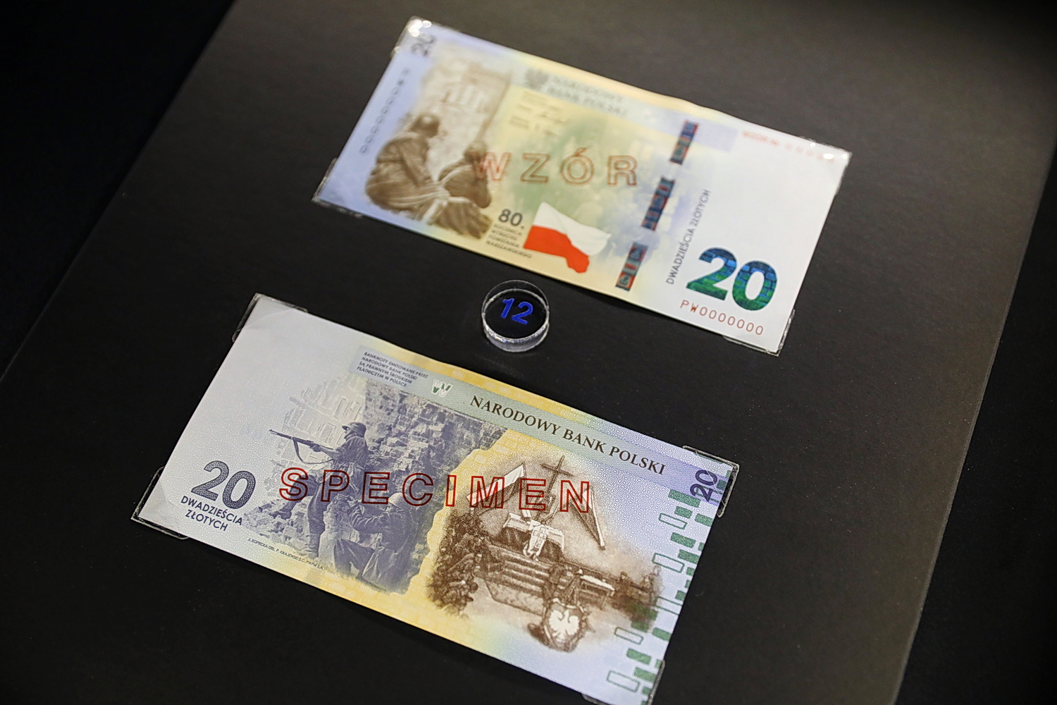 Obok monet są również banknoty, które także budzą zainteresowanie znawców. Tak jest w przypadku wzoru banknotu kolekcjonerskiego o nominale 20 zł, związanego z 80. rocznicą wybuchu powstania warszawskiego.