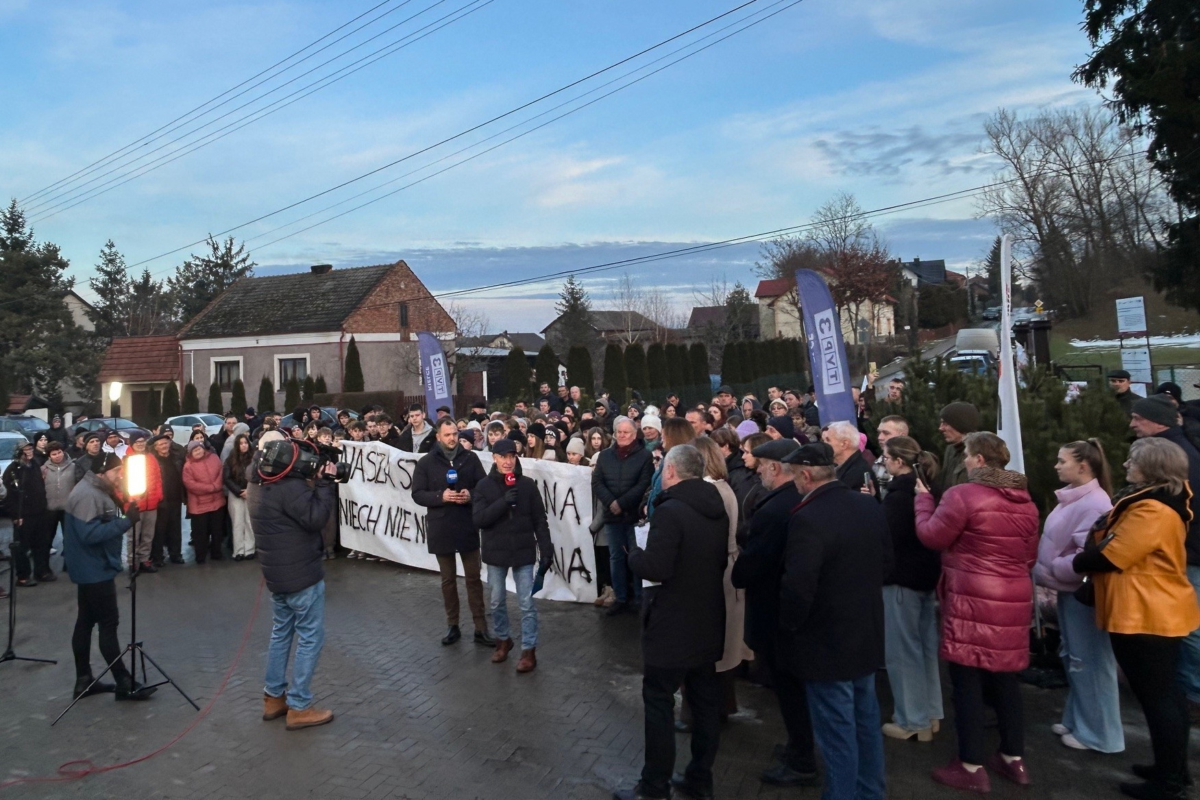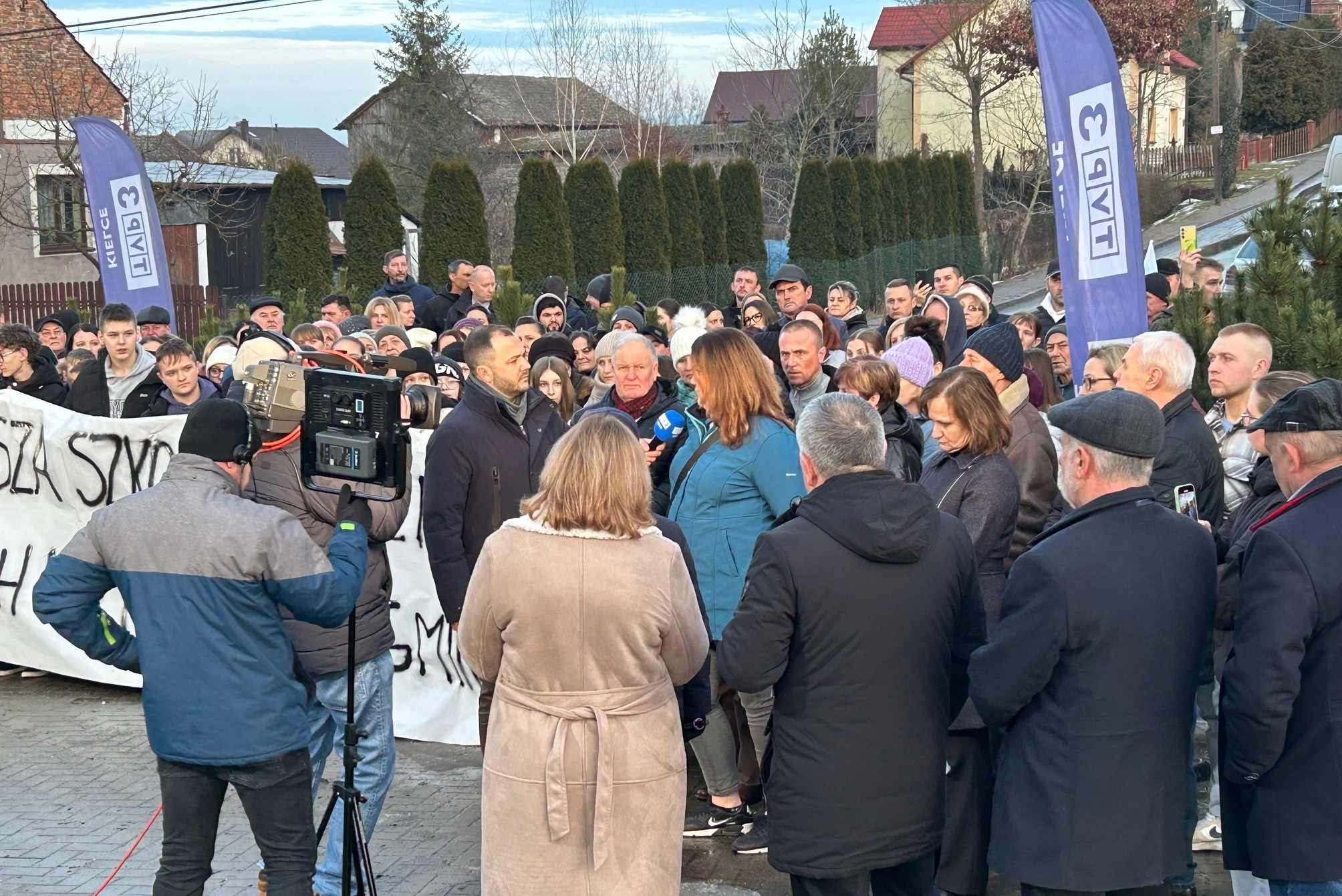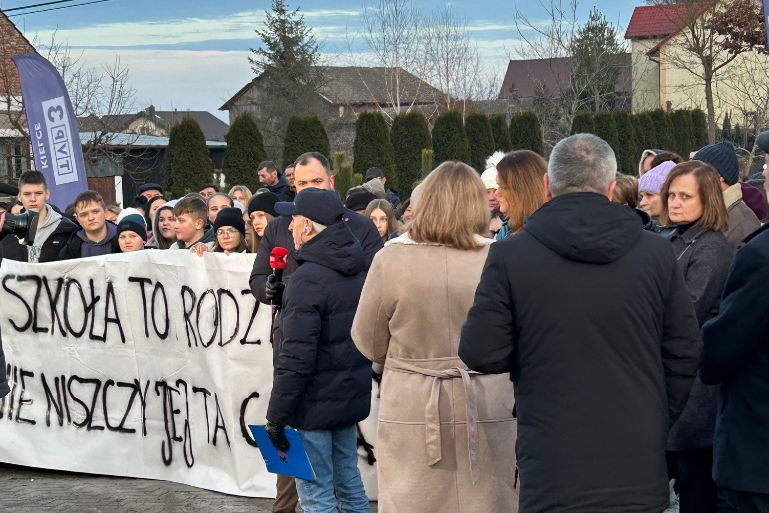 Przy drodze w Topoli pojawiły się banery protestacyjne z hasłami: „Dzieci nie są kosztem do cięcia”, „Zamknięcie szkoły to zdrada lokalnej społeczności” oraz „Radni, posłuchajcie mieszkańców, nie kalkulatora”. Władze gminy Skalbmierz mówią o demografii i pieniądzach, a rodzice o komforcie i bezpieczeństwie dzieci. Czy szkoła w Topoli podzieli los wielu zamykanych w regionie szkół? O tym rozmawialiśmy w środę (11 lutego) w programie „Interwencja”, który prowadzili Piotr Opoka z TVP3 Kielce oraz Marcin Przemirski z Radia Kielce.