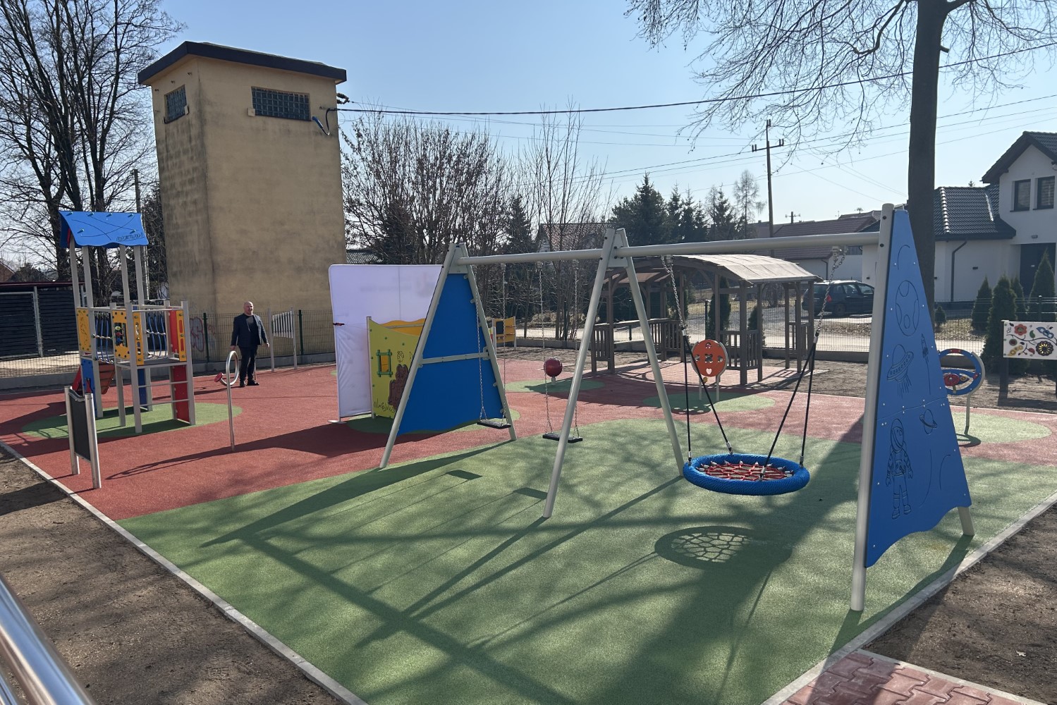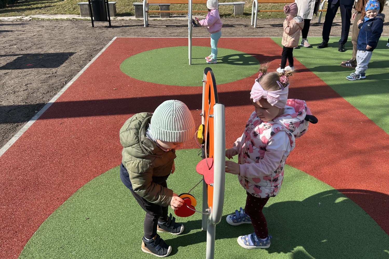 – Na terenie placu mamy wiele urządzeń, które sprawią, że czas spędzony w tym miejscu nie będzie tylko czasem na zabawę, ale także na naukę poprzez zabawę. To m.in. tablice sensoryczne, czy błotna kuchnia. Pozwolą one na wszechstronny rozwój dzieci angażując zmysły, ruch i ciekawość poznawczą – dodał Damian Sławski.