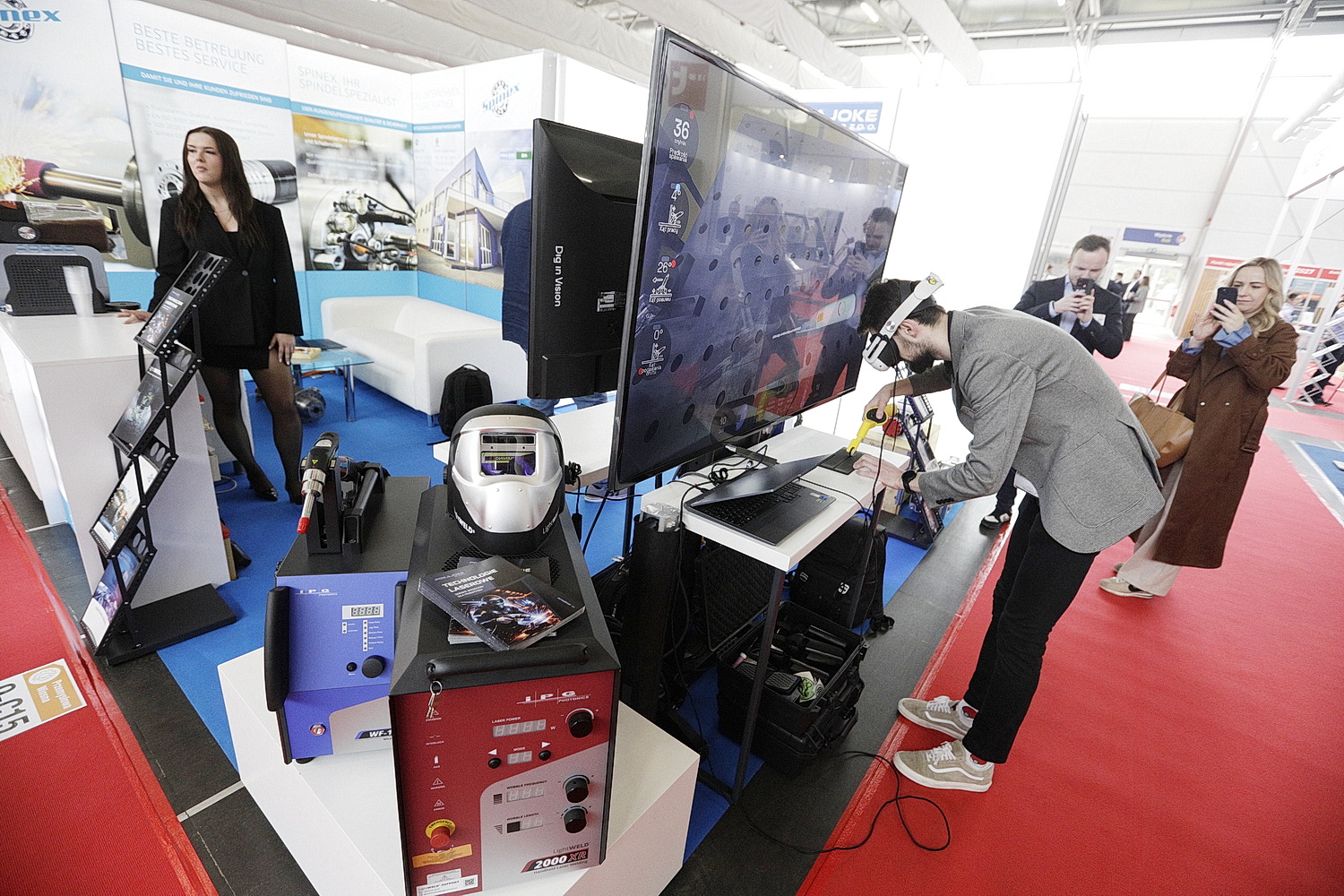 W halach wystawowych prezentuje się ponad 700 firm z 18 krajów świata. Na stoisku firmy Dig in Vision można odbyć kurs spawalnictwa za pomocą… googli VR. Maciej Habiniak mówi, że firma prezentuje symulator procesu spawania laserowego.