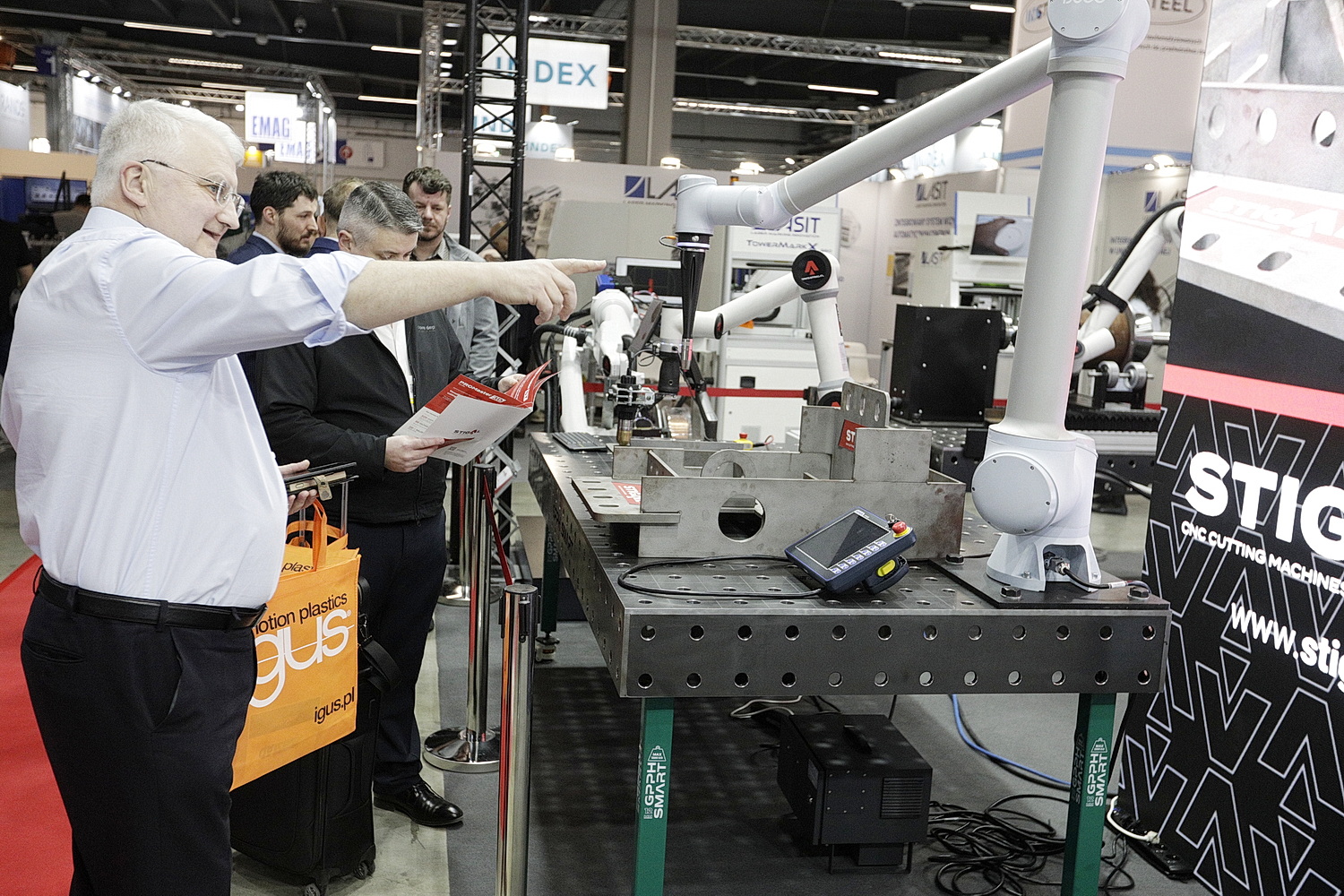 W halach targowych stanęły zaawansowane maszyny i roboty, które na co dzień pracują w fabrykach – produkują części do samochodów, sprzętów elektronicznych czy elementy konstrukcyjne wykorzystywane w budownictwie. Jacek Baran z firmy Eagle – polskiego producenta wycinarek laserowych prezentował wycinarkę o mocy 30 kilowatów.