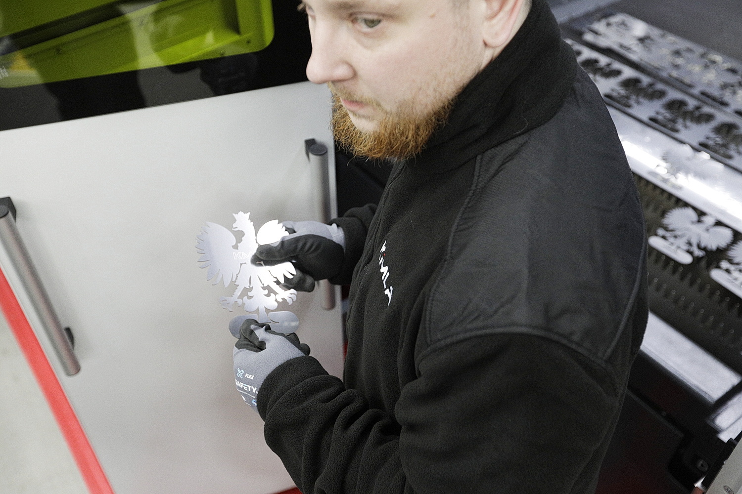 – Jest to jedna z największych i najmocniejszych maszyn dostępnych w Polsce i Europie. Za pomocą wiązki laserowej topimy materiał, dzięki czemu jesteśmy w stanie wykonać kontur, detal, który nas finalnie interesuje. Może być to element, który codziennie wykorzystujemy w domu, na przykład widelec, jak również element naszego samochodu, ciężarówki czy samolotu – przybliża.