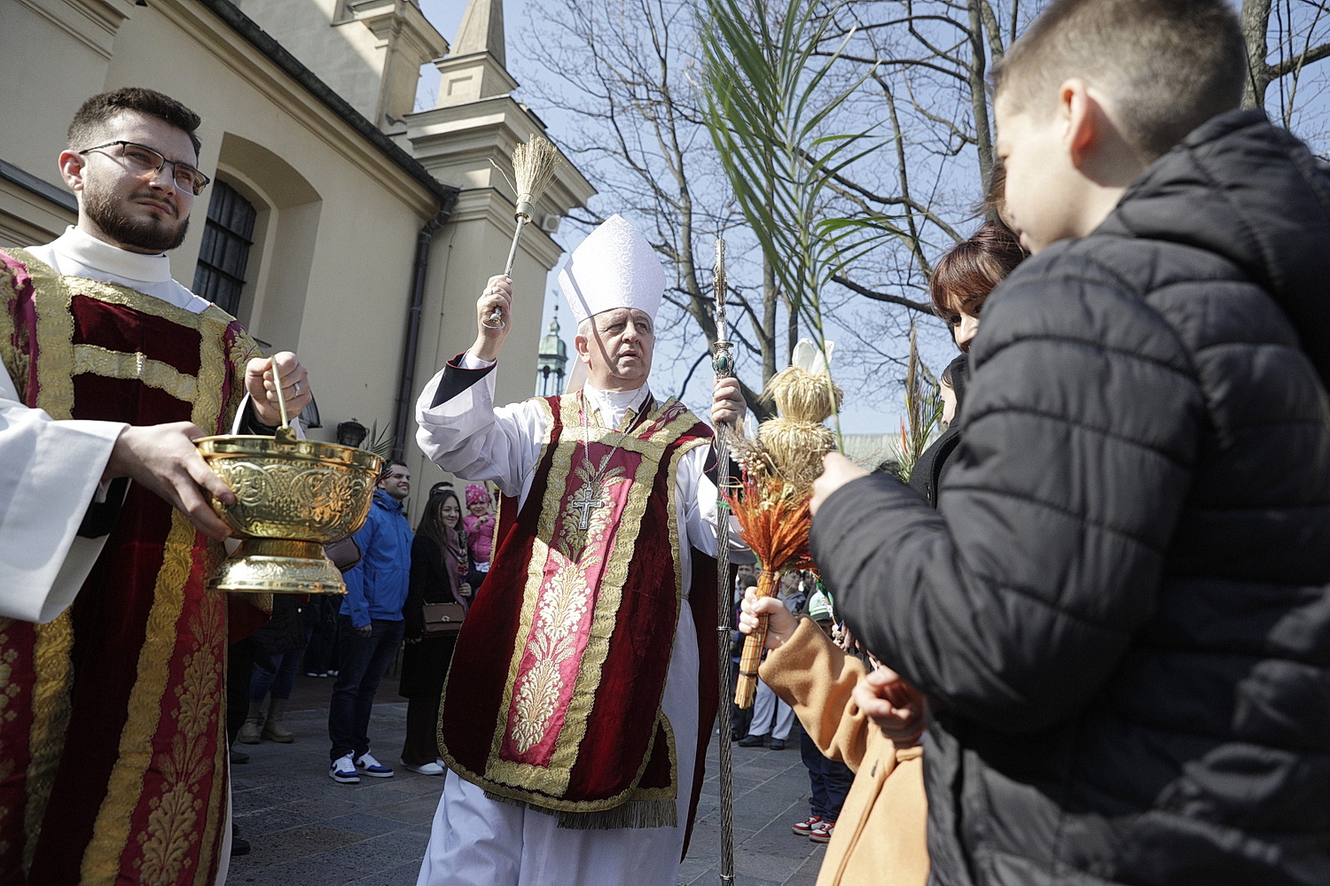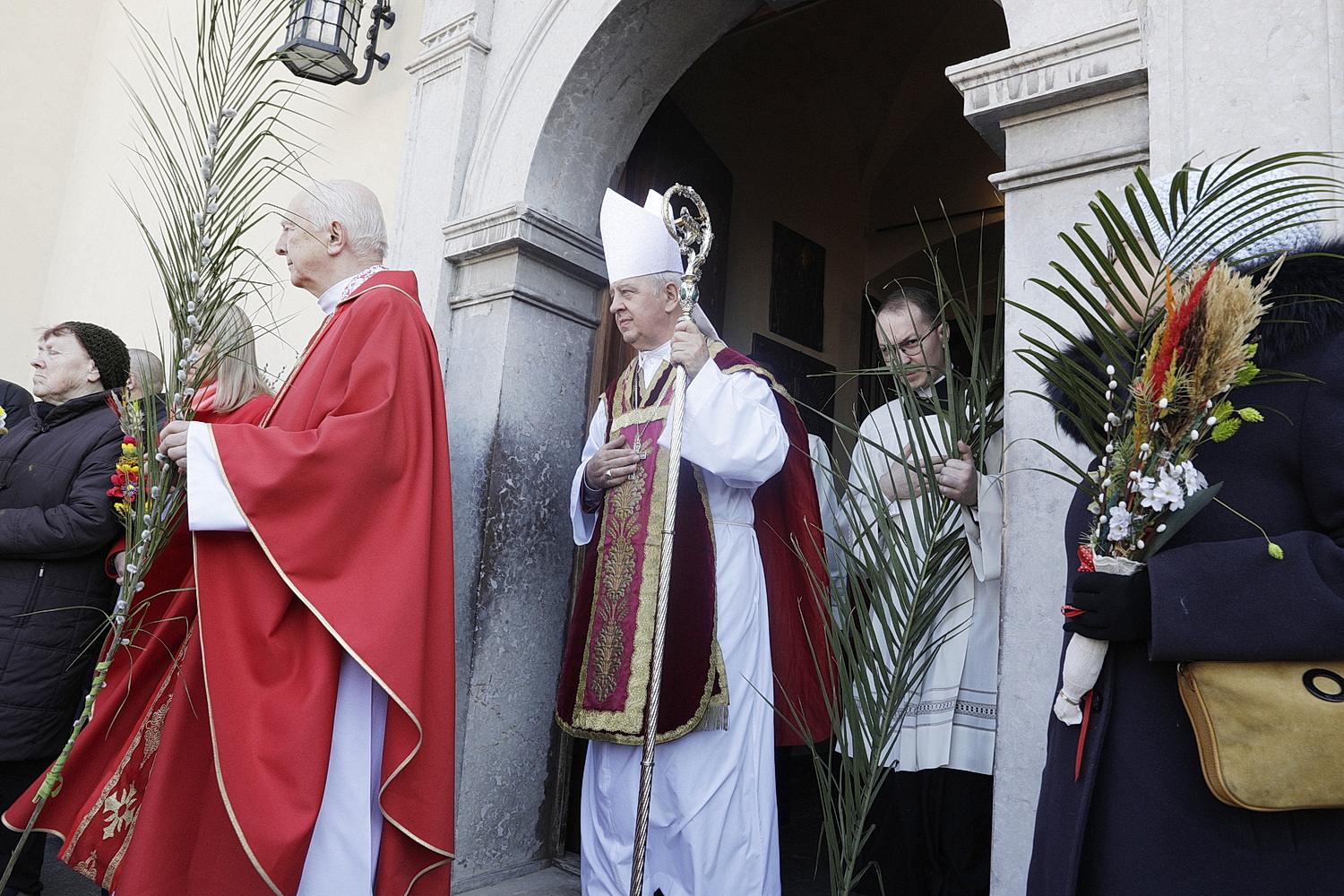 Hierarcha przewodniczył uroczystej sumie, którą rozpoczęła procesja z palmami wokół bazyliki katedralnej w Kielcach. Jest to nawiązanie do uroczystego wjazdu Jezusa do Jerozolimy, gdy witały go tłumy.