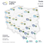 Czwartek (2 kwietnia) przyniesie na ogół pogodną aurę. Więcej chmur pojawi się na wschodzie i południowym wschodzie, gdzie okresami spadnie deszcz, a w rejonach podgórskich deszcz ze śniegiem. Noc chłodna, miejscami z przymrozkami. Temperatura maksymalna od 7°C na południowym wschodzie do 12-13°C w centrum i na zachodzie. Wiatr słaby i umiarkowany, północny.