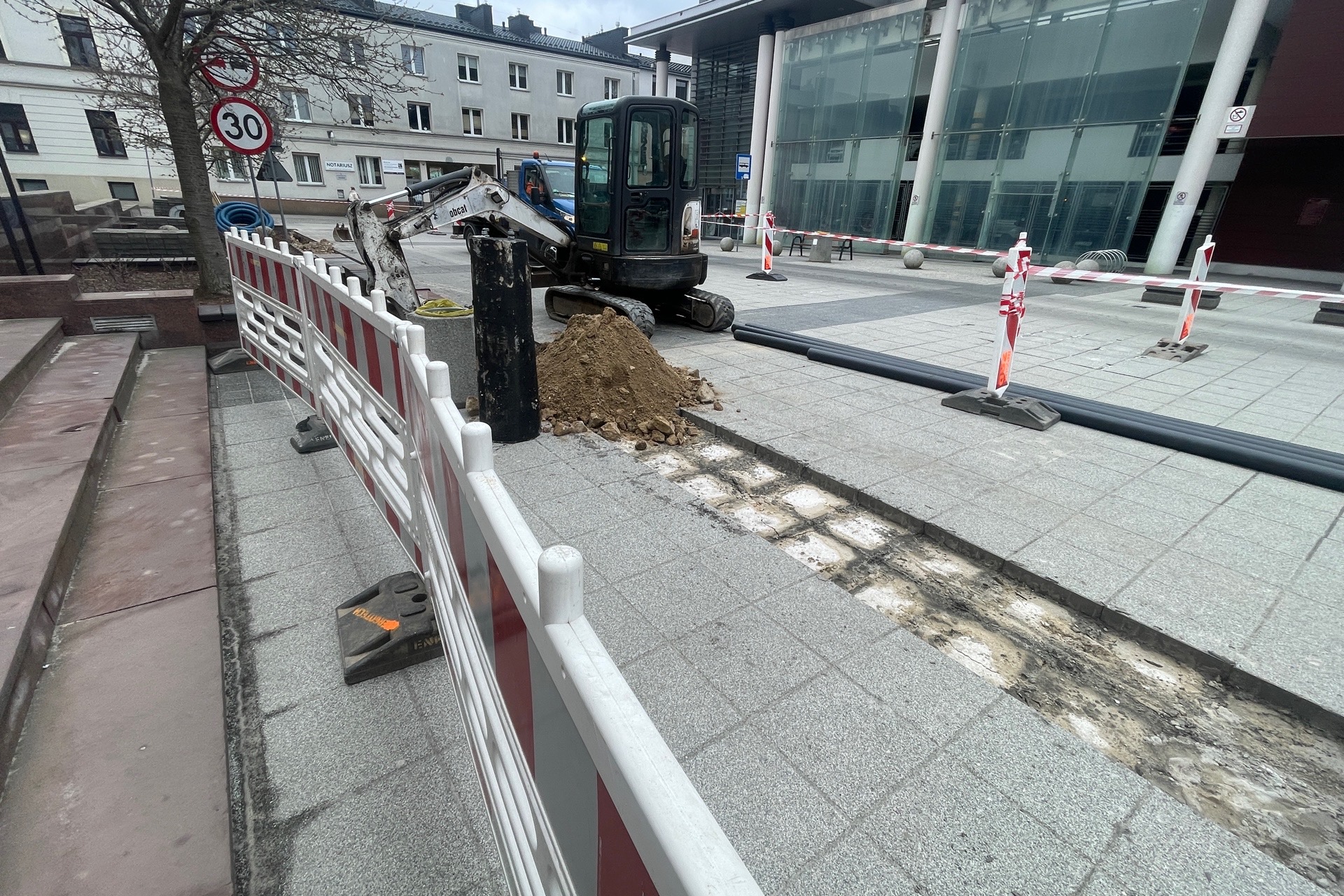 Równocześnie w tym miejscu rozpoczął się montaż nowego, energooszczędnego oświetlenia. Wykonawca rozpoczął od prac związanych z budową sieci i wykonaniem fundamentów pod słupy.