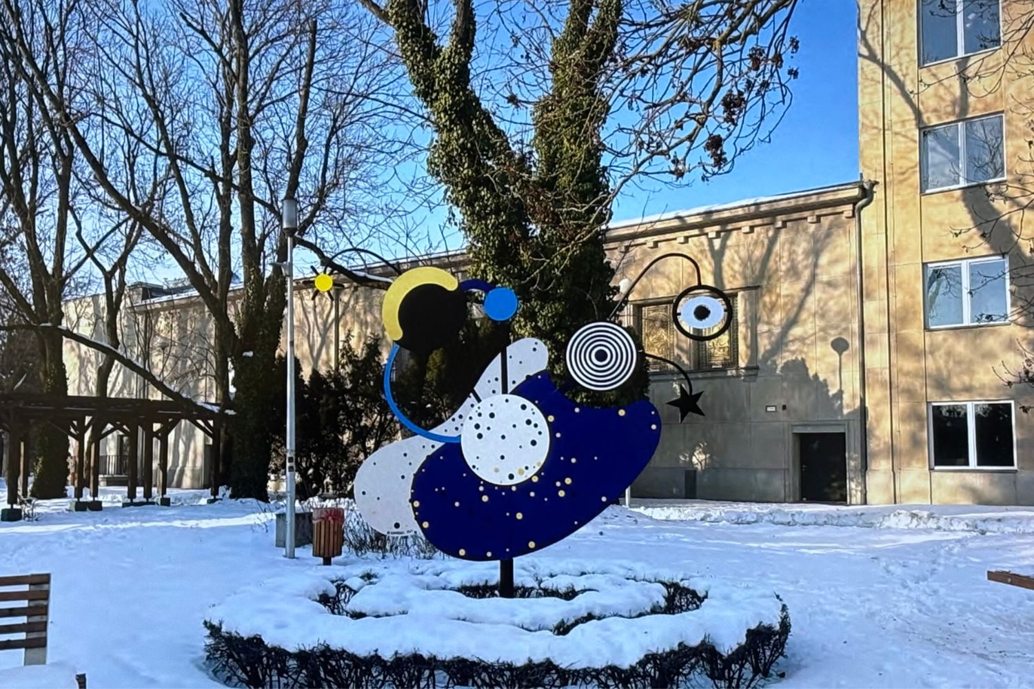 Ryciny i ilustracje są bajecznie kolorowe, ale wiemy już, że równie kolorowy jest kosmos, stąd też barwy mojej instalacji. Przez rok była ona prezentowana w Wilanowie, teraz na stałe zostanie ustawiona w Ostrowcu przy kinie Etiuda, w miejscu dawnej fontanny.