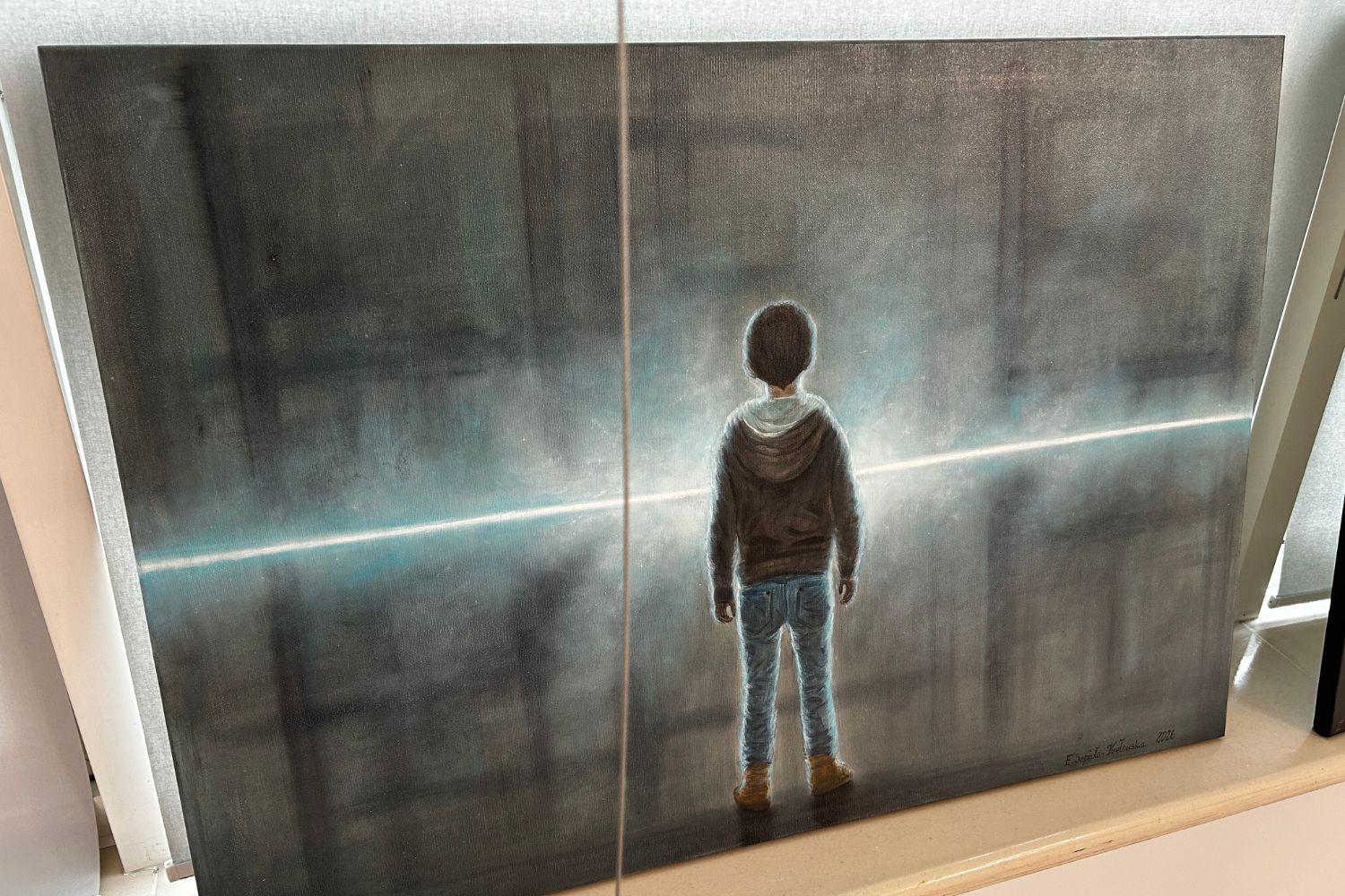 – Malarstwo Ewy Sepioło-Krełowskiej utrzymane jest w kolorach ciemnych, ciężkich, a jednocześnie mocnych. Można stwierdzić, że wynika to z fascynacji horrorami, ale przede wszystkim z własnych, trudnych doświadczeń codzienności. Artystka jest osobą skromną i małomówną, a swoje przemyślenia i emocje przelewa na płótno. Motywem przewodnim jest postać dziecka, ukazana nie jako symbol kruchości, jak to najczęściej ma miejsce w malarstwie, ale jako postać spoglądająca w przyszłość, chcąca przekazać otoczeniu jakąś ważną informację – zaznacza.