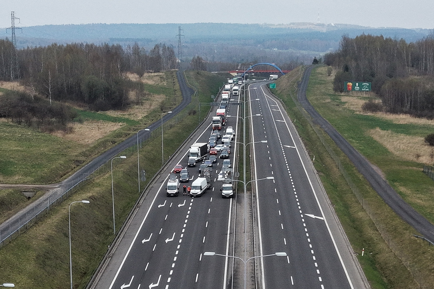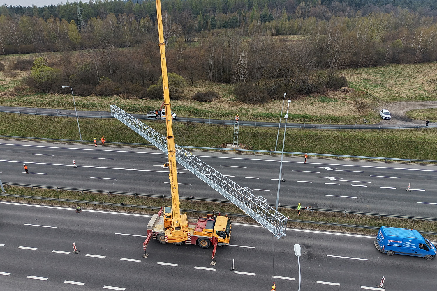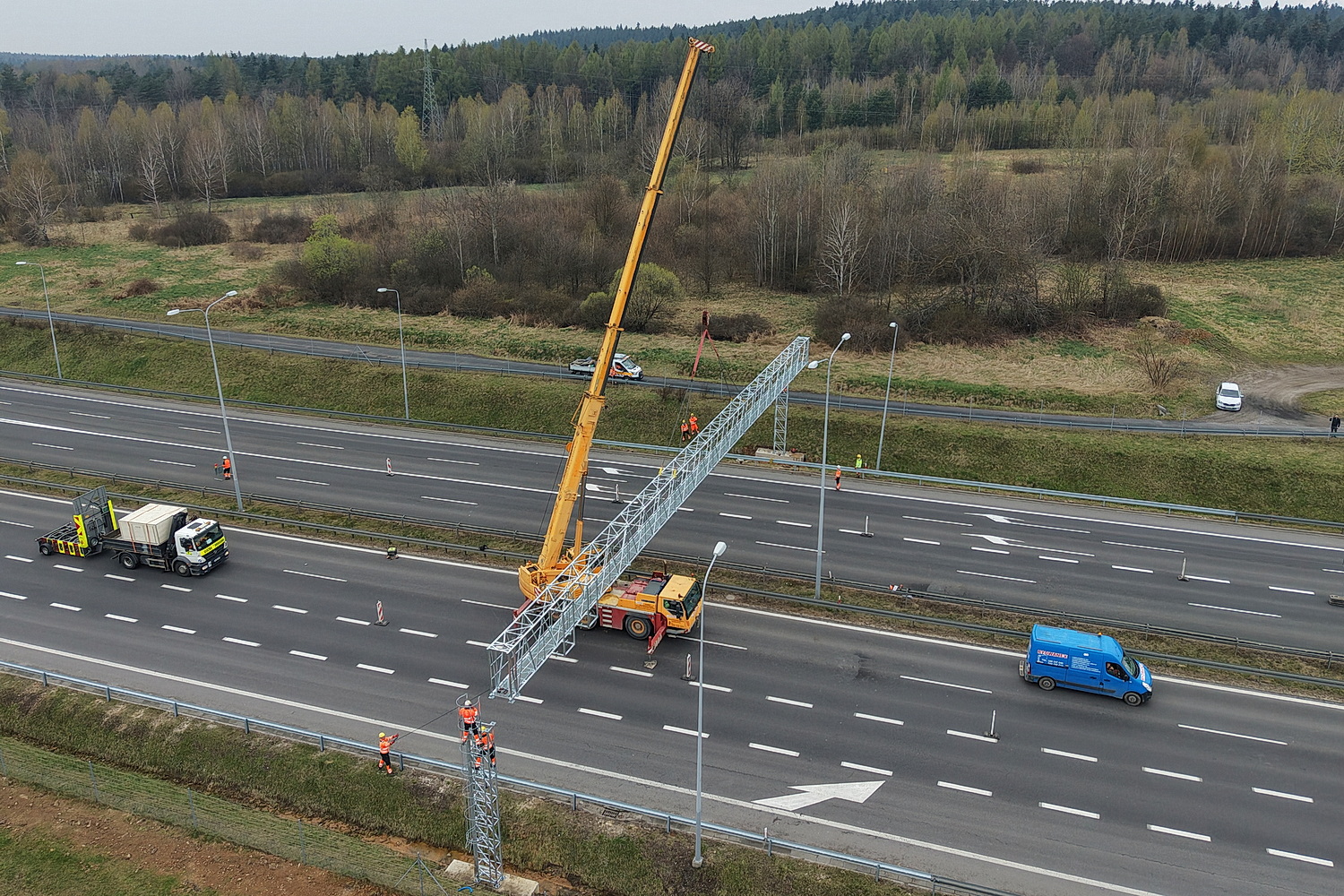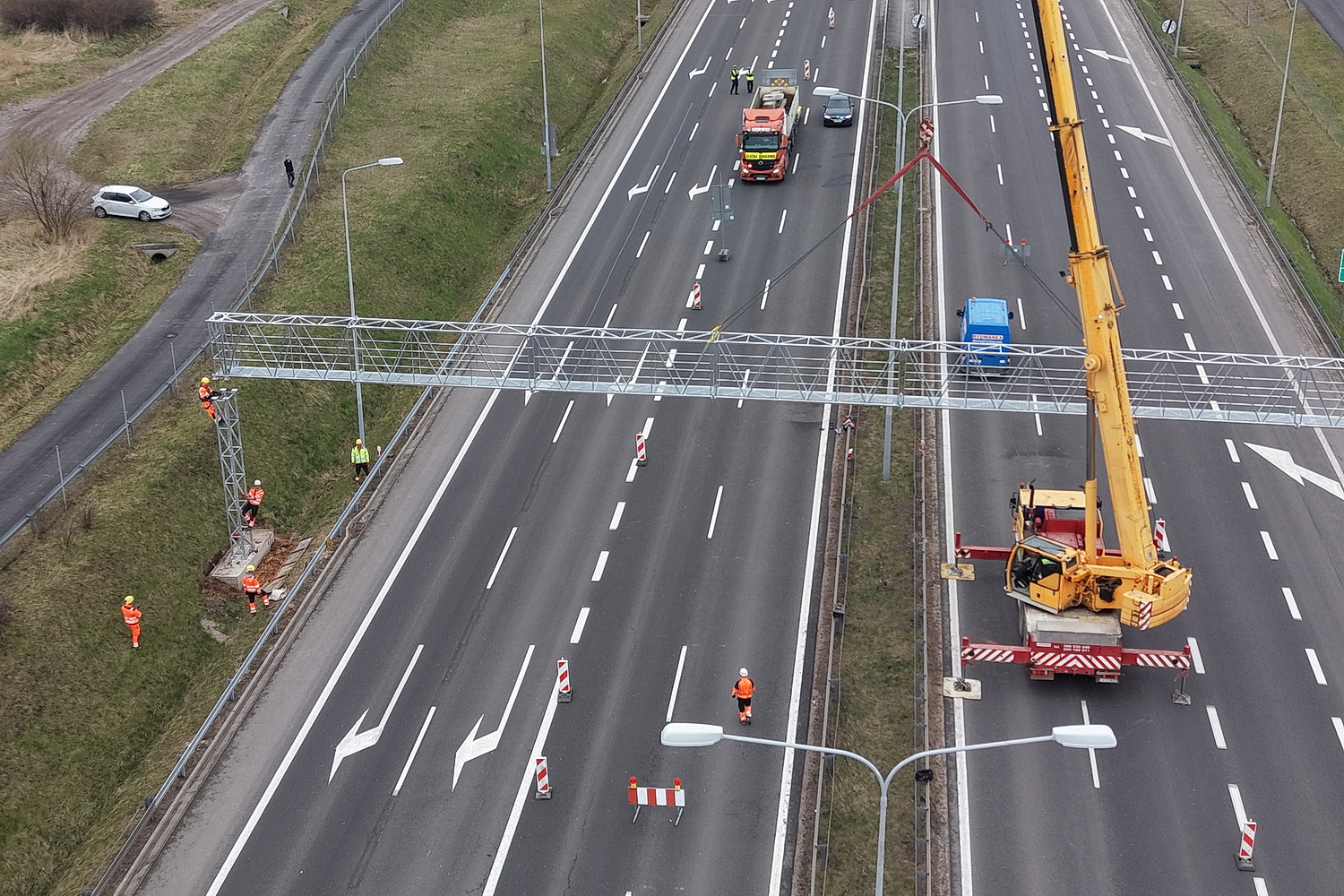 15.04.2026. Trasa ekspresowa S7, okolice węzła Kielce Północ. Montaż tzw. bramownic niezbędnych do uruchomienia odcinkowego pomiaru prędkości (OPP) / Fot. Jarosław Kubalski – Radio Kielce
