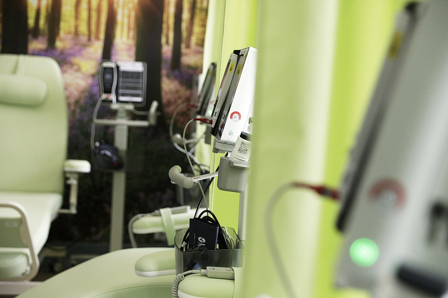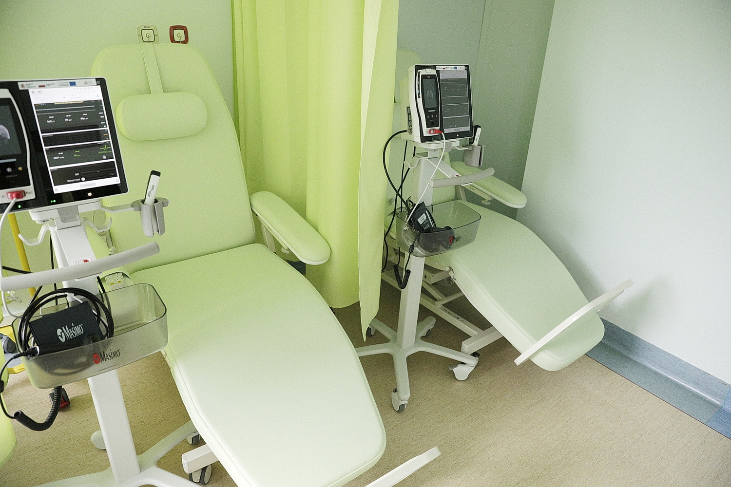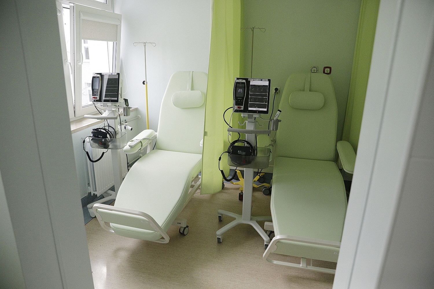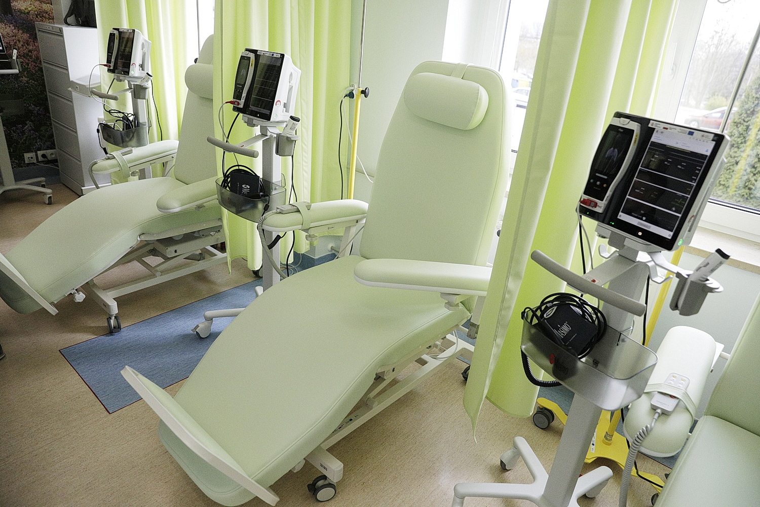 Marta Krzysiek, kierownik Onkologicznego Centrum Wsparcia Badań Klinicznych ŚCO wyjaśnia, że w sali badań klinicznych znajduje się 8 foteli terapeutycznych do prowadzenia zabiegów chemioterapii. Oprócz tego w pomieszczeniu są też monitory parametrów życiowych oraz aparaty EKG.