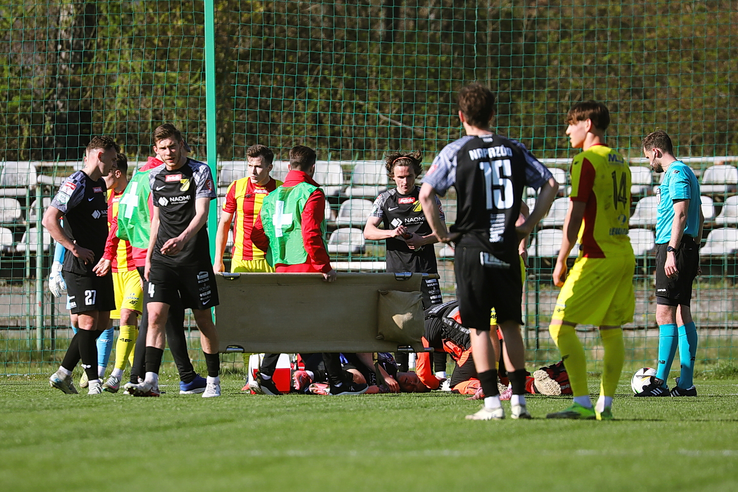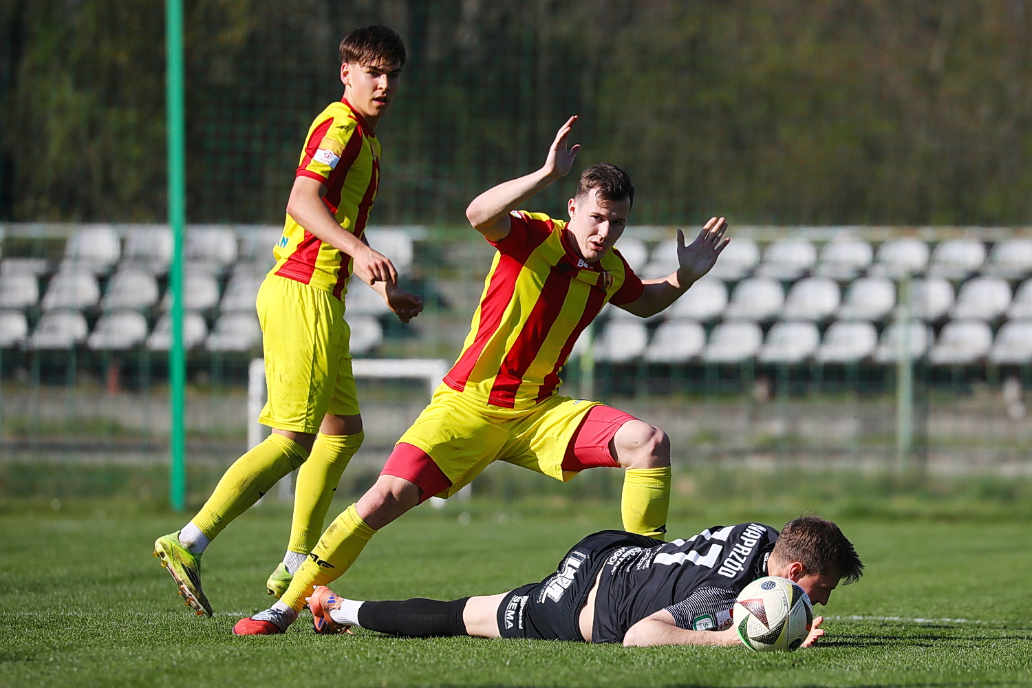 Od 83. minuty jędrzejowianie grali w „dziesiątkę” po drugiej żółtej i w efekcie czerwonej kartce dla Igora Kośmickiego.