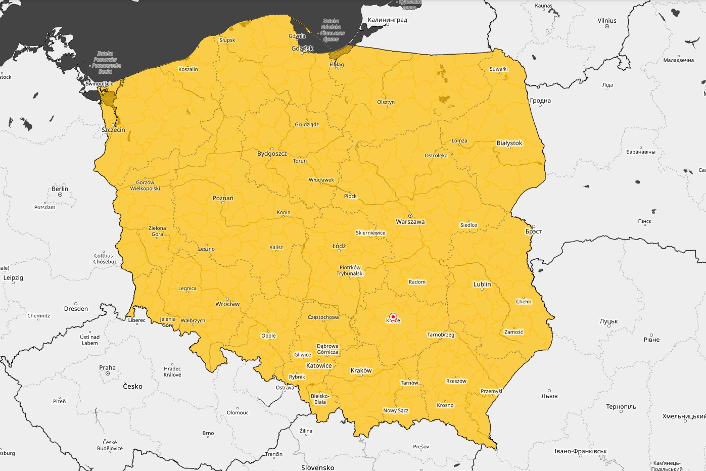 W nocy ze środy na czwartek bez przymrozków tylko na Nizinie Szczecińskiej, temperatura minimalna od -4°C do 0°C.