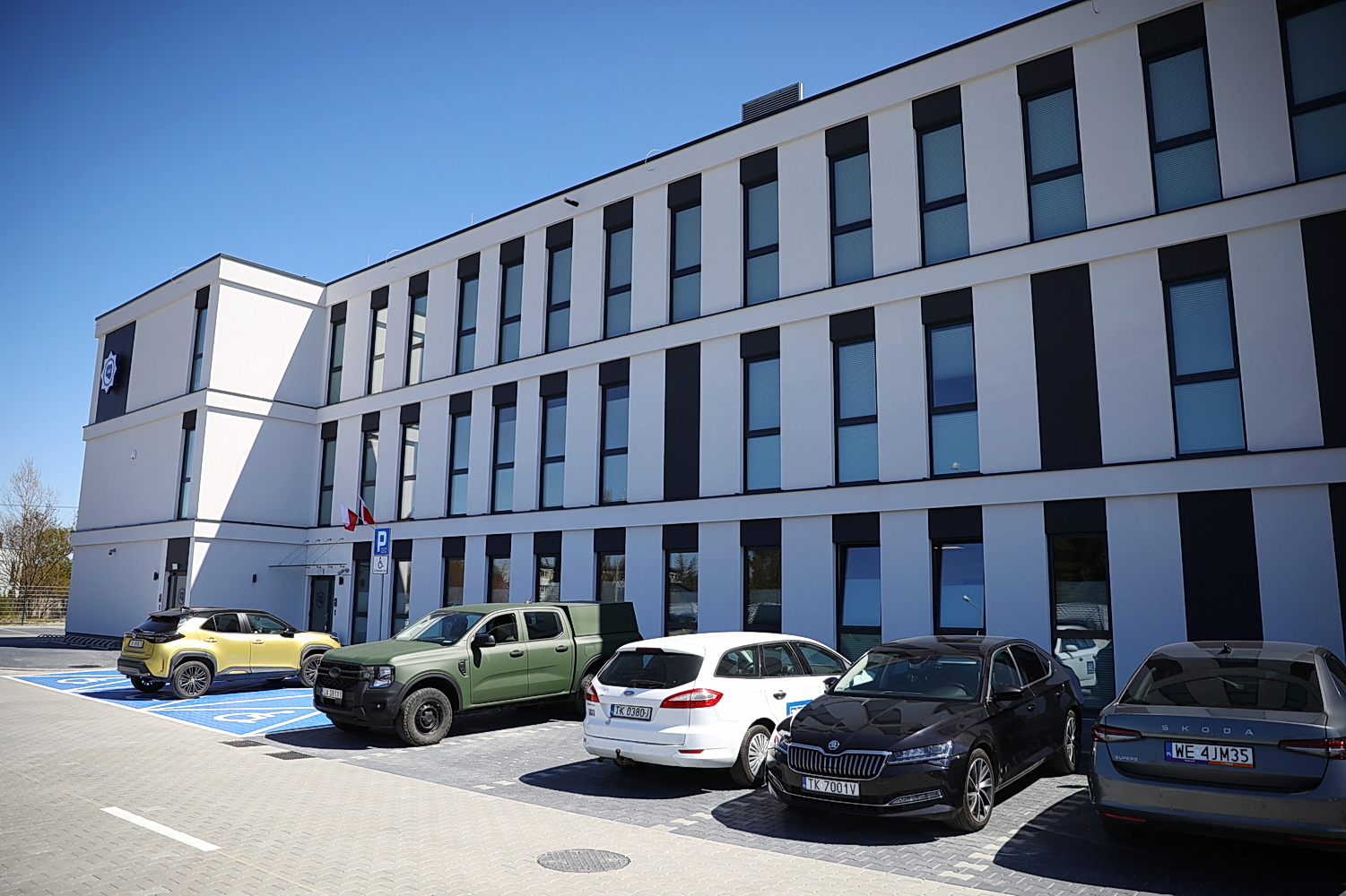 – Jest to obiekt trzypiętrowy. Mamy możliwość, aby policjanci pracowali w tym budynku niezależnie od tego, czy jest zasilanie zewnętrzne. Mamy fotowoltaikę, magazyny baterii, a także zewnętrzny agregat, co pozwala potrójnie zabezpieczyć budynek – wylicza.