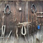 Na ścianach stodoły umieszczono różne przedmioty używane dawnej na wsi. To m.in. jarzmo do noszenia wody, chomąto, urządzenia do czesania lnu.