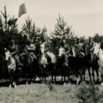 Jesień 1944 r. Brygada Świętokrzyska. Na zdjęciu (od lewej): ppor. Franciszek Bajcer „Sanowski”, NN, kpt. Henryk Figura „Step”, ppłk Władysław Marcinkowski „Jaxa”, NN, NN, kpr. Bronisław Główka „Buława”. Zdjęcie udostępnione przez Centrum Dokumentacji Czynu Niepodległościowego.