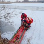 – Zwierzę częściowo znajdowało się w wodzie. Ratownicy przy użyciu sań wodno-lodowych zabrali psa na brzeg – relacjonuje.