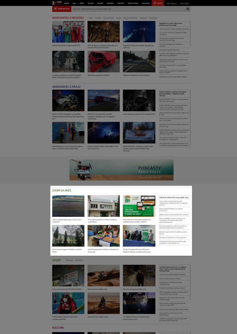 Pokażemy piękną, nowoczesną i inspirującą świętokrzyską wieś. Zaprezentujemy nowe technologie, maszyny rolnicze, środki ochrony roślin. Odwiedzimy rolników w polu i w domu. Pokażemy ich problemy i sukcesy. Zaprezentujemy zarówno młodych przedsiębiorców jak i strażników świętokrzyskiej tradycji – przedstawicieli ginących zawodów. Gdzie wypoczywać na wsi? Dokąd iść na grzyby? Jakie zioła wykorzystać w kuchni – o tym również w audycji „Zoom na wieś”.