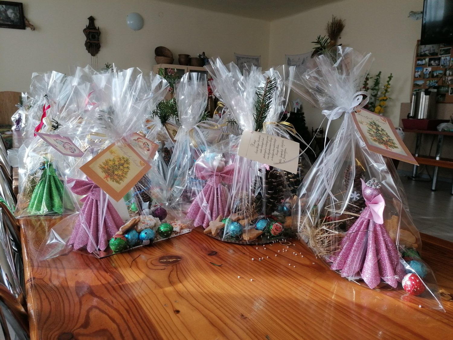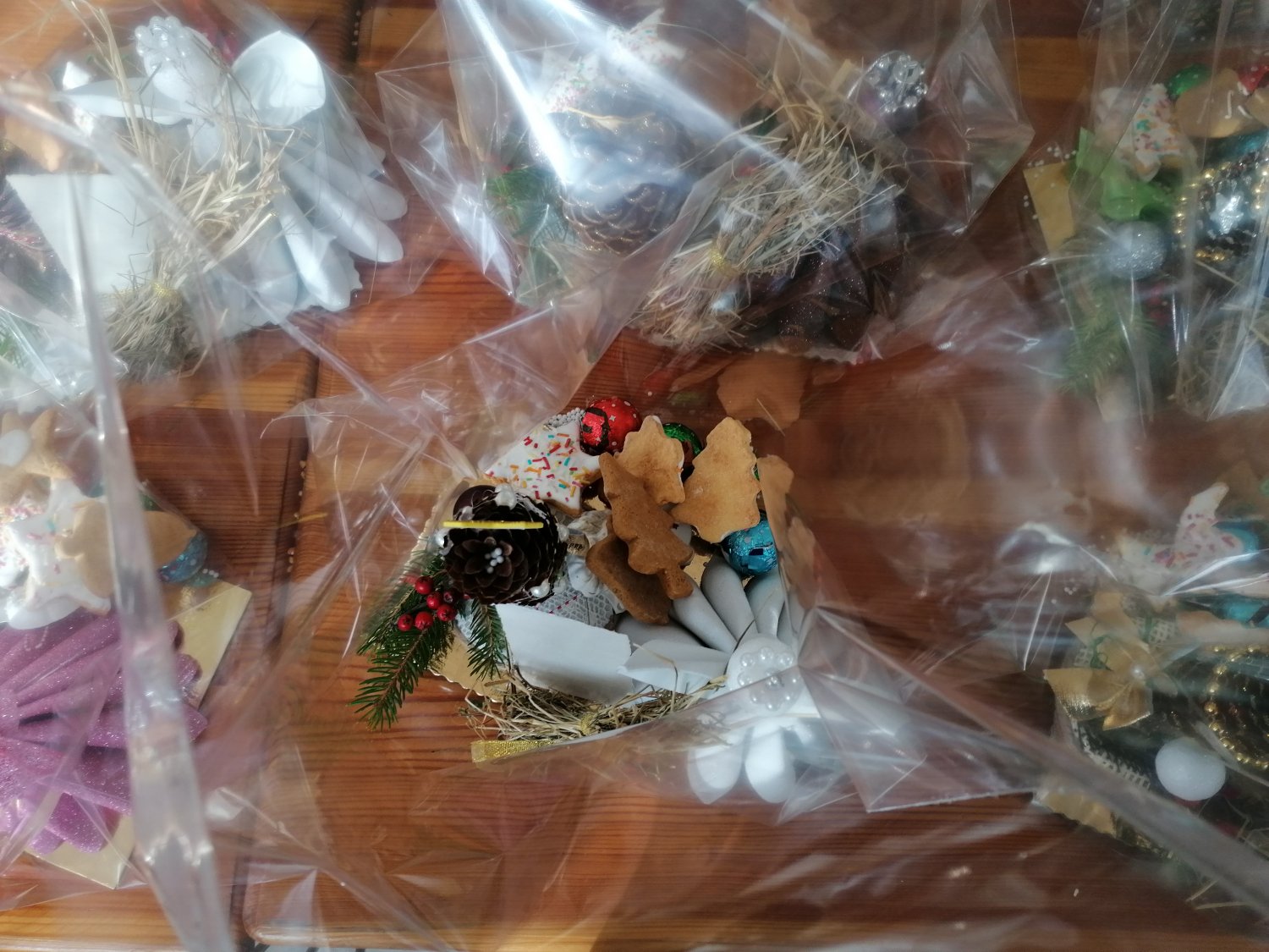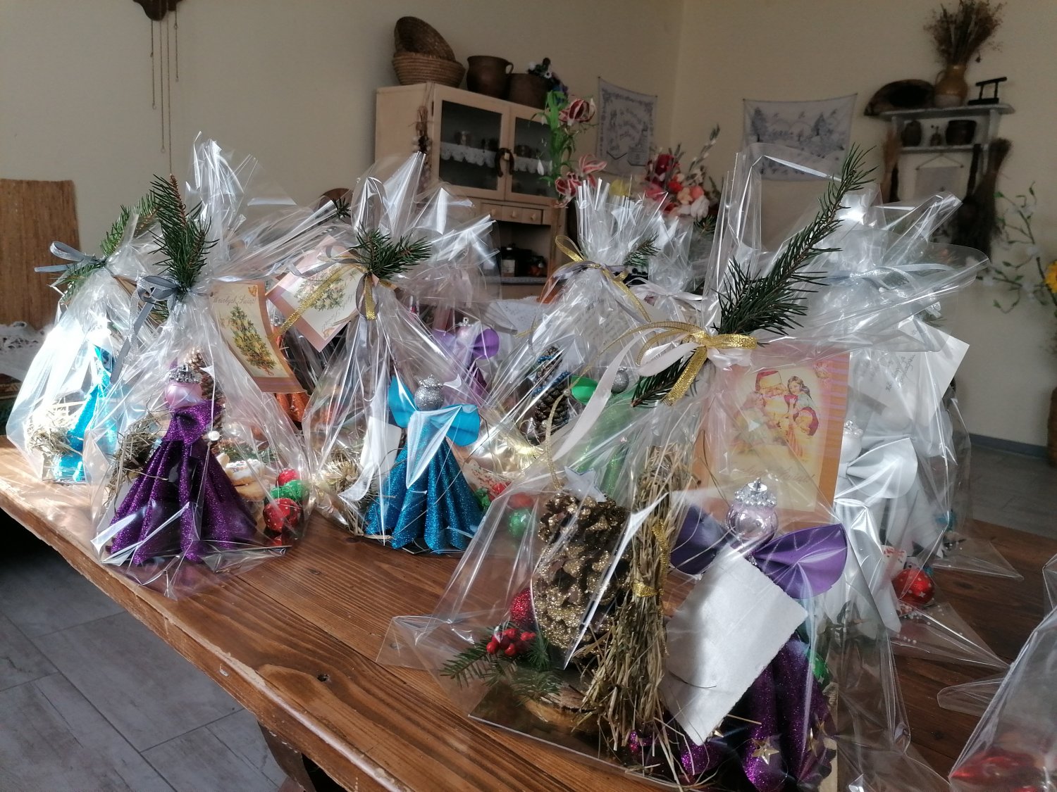 – To m.in. własnoręcznie robione aniołki z gipsu, ozdoby z szyszek i choinki, ciasteczka pieczone z lukrem. Do tego cukierki, opłatek i sianko pod obrus – wymienia.