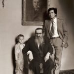 Cztery pokolenia mężczyzn rodziny Przypkowskich: na zdjęciu pod portretem Feliksa Przypkowskiego w fotelu siedzi Tadeusz Przypkowski. Po prawej były dyrektor muzeum im. Przypkowskich – Piotr Maciej oraz czteroletni wówczas Jan Przypkowski (po lewej) / Fot. Muzeum im. Przypkowskich w Jędrzejowie