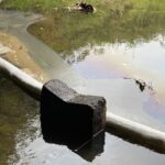 – Dostaje się do rzeki z jednego z kanałów burzowych. Postawiliśmy rękawy, które mają wyłapać tę substancję – mówi strażak.