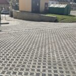 Prace modernizacyjne na parkingu polegały na usunięciu bardzo starej zużytej nawierzchni i położeniu ażurowych płyt ekologicznych tworzących równą nawierzchnię.