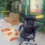 Są na nim fotel, kanapa i dywan. Podejrzewamy, że fotel jest przeznaczony dla pasażerów autobusów, które zgodnie z rozkładem jazdy mają przybyć na przystanek w ciągu kilku minut.