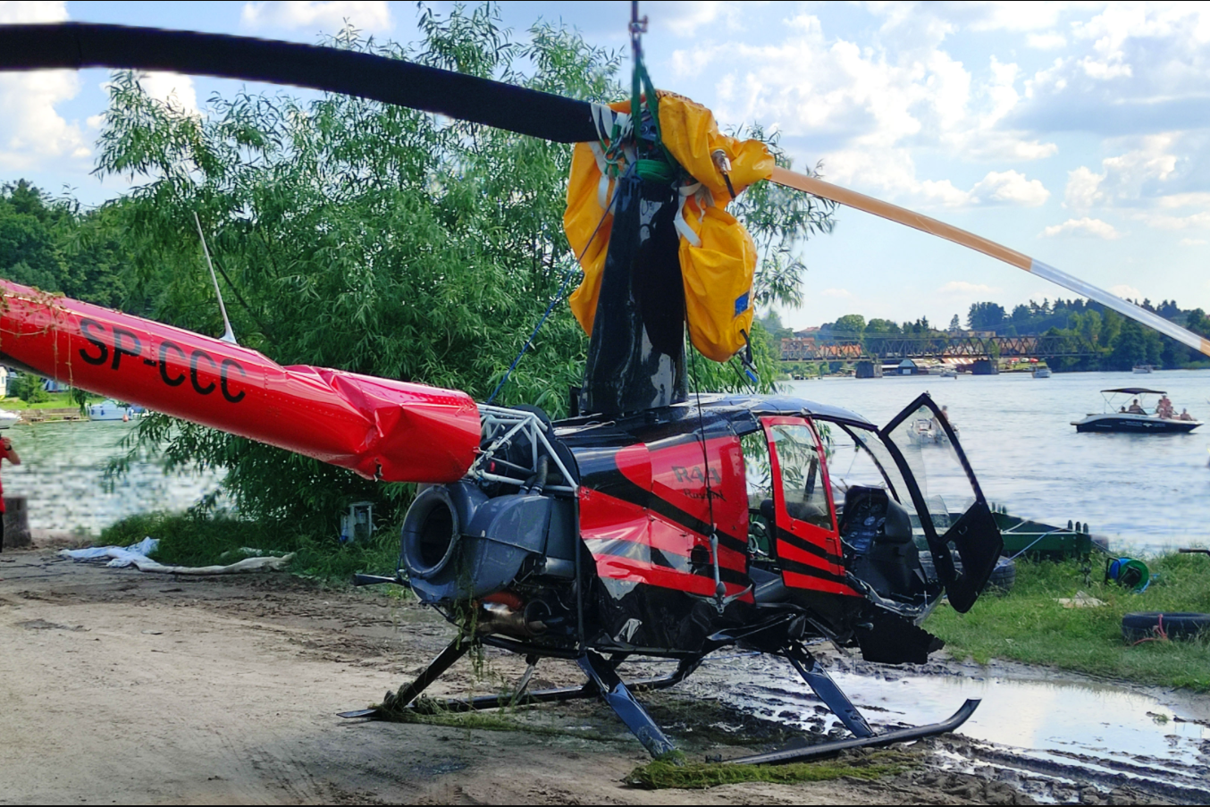 – Śmigłowiec podniesiono z dna przy pomocy specjalnych balonów napełnionych powietrzem. To był najtrudniejszy moment, ponieważ nie wiadomo było, w jakim stanie jest śmigłowiec i jak się zachowa przy próbie uniesienia go. Śmigłowiec zostanie przetransportowany na policyjny parking, gdzie będzie czekał na oględziny komisji do spraw wypadków lotniczych. Nurkowie straży pożarnej sprawdzili wrak, czy nie ma tam kolejnych osób poszkodowanych. Całe szczęście zostało to wykluczone – poinformował rzecznik strażaków Rafał Melnyk.